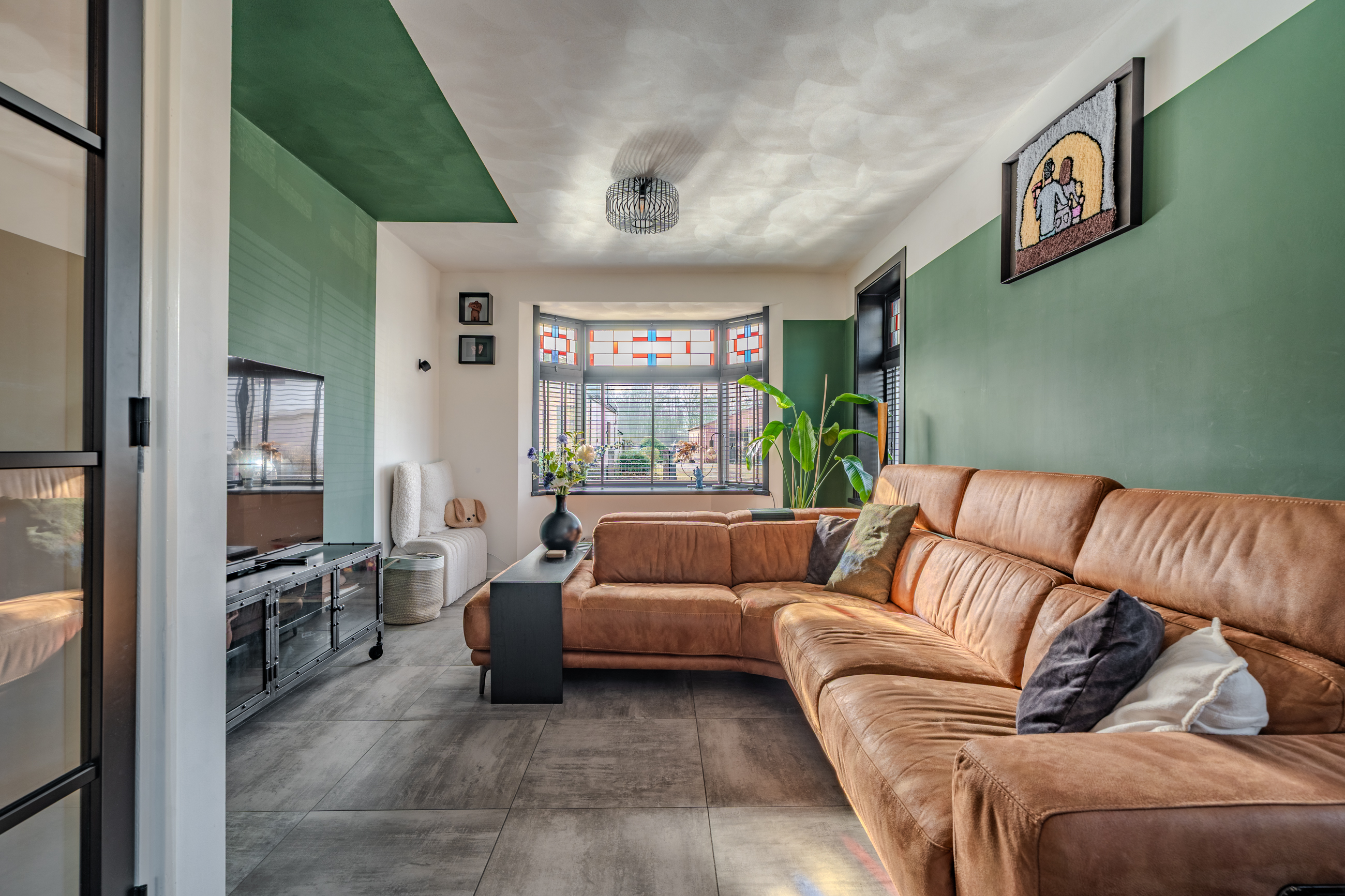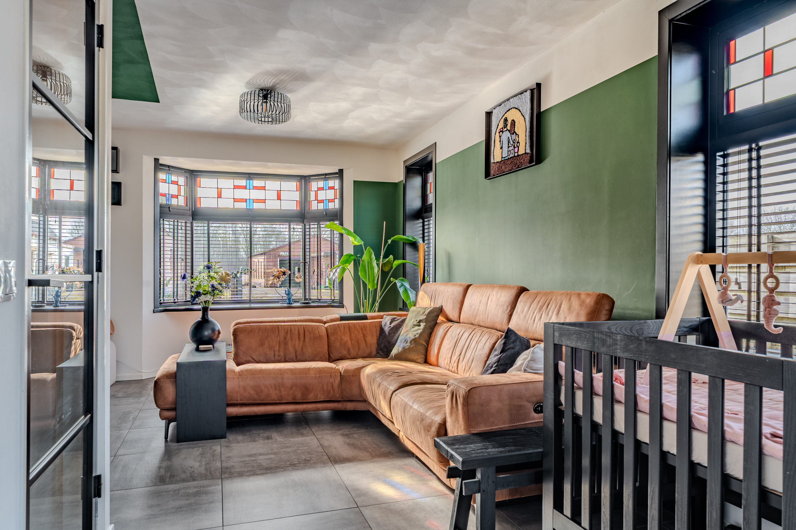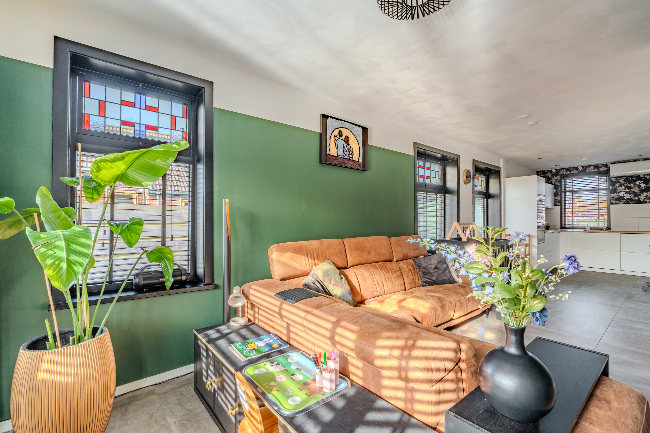 Deze vrijstaande jaren '30 woning beschikt nog over zijn originele glas-in-lood ramen wat zorgt voor veel sfeer.