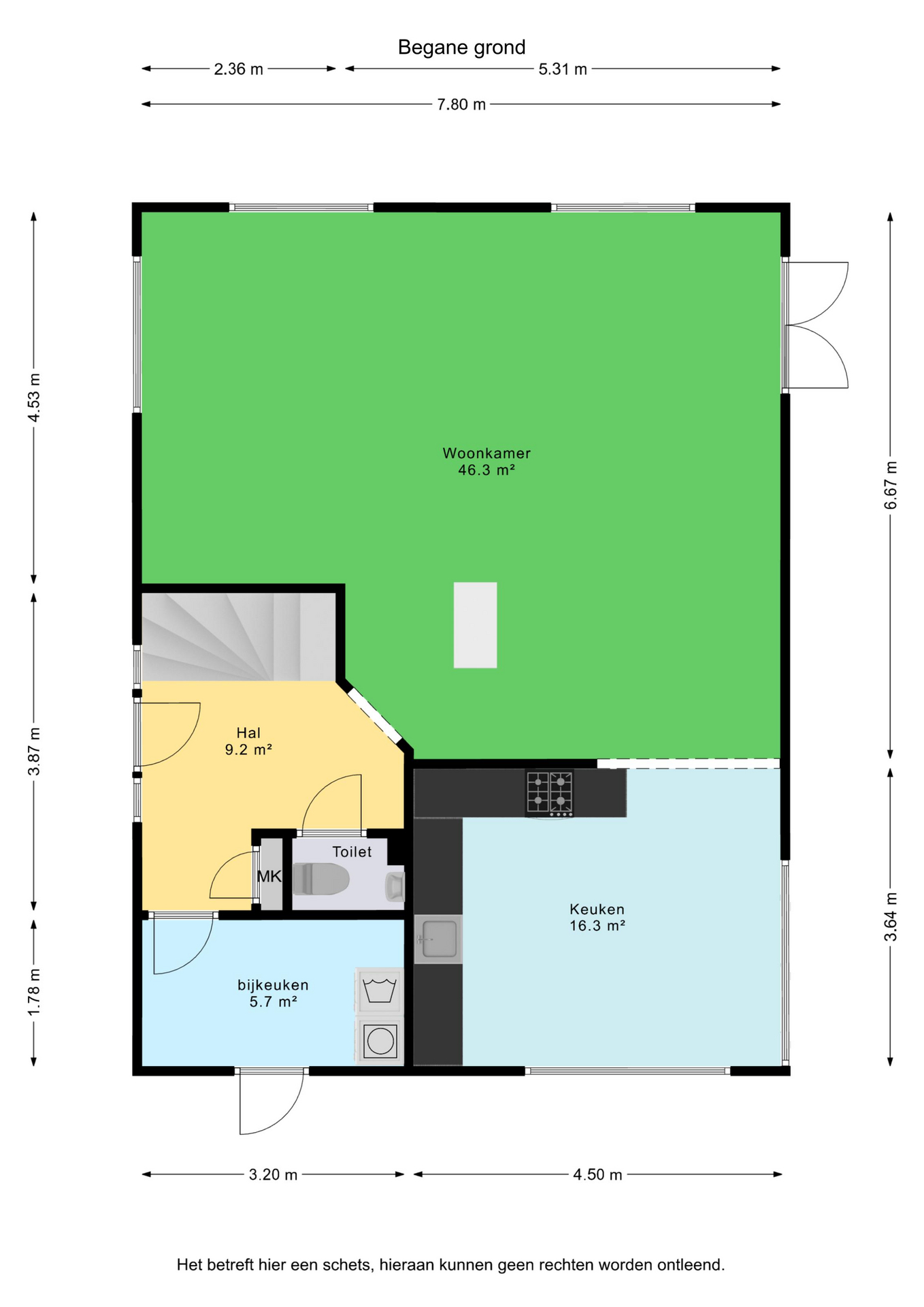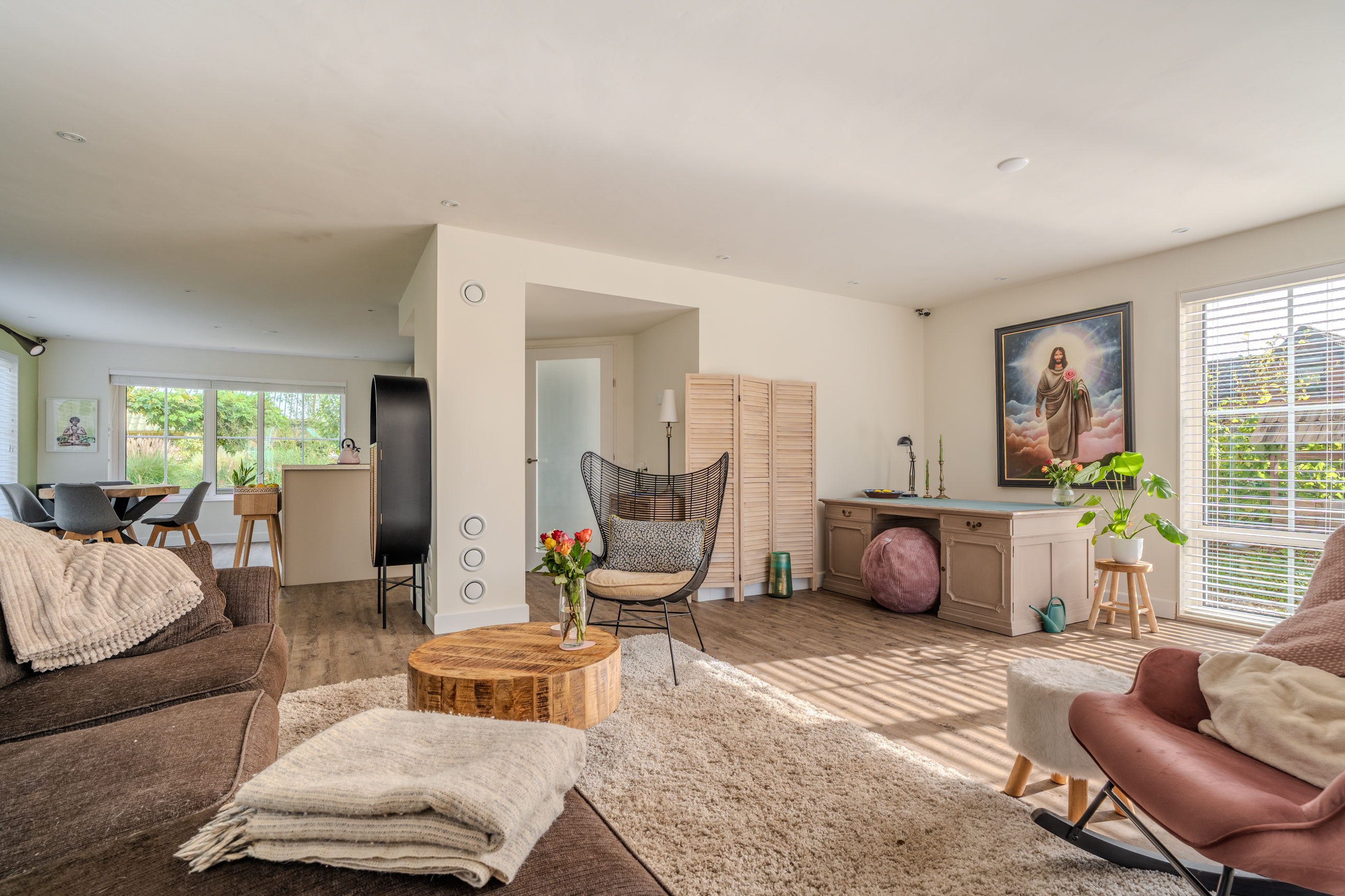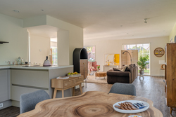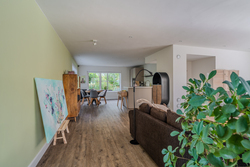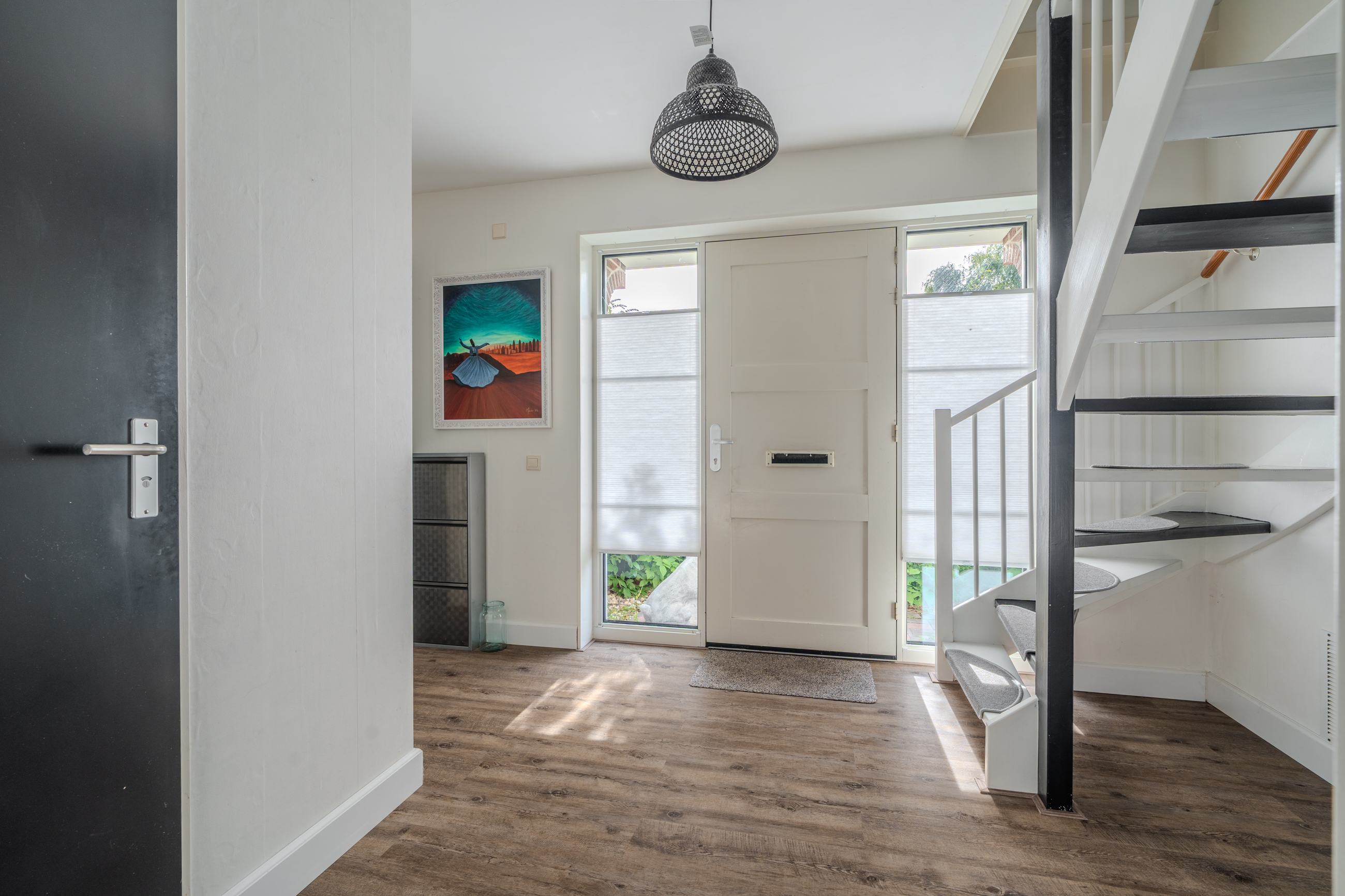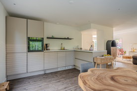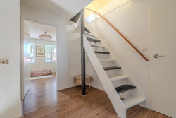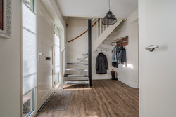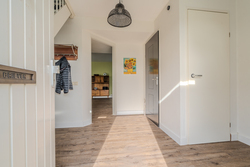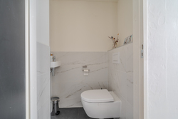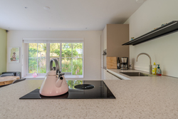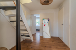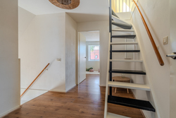 entree/hal met trapopgang en meterkast – gemoderniseerd (2024) toilet met hangcloset en fontein - royale woonkamer(46,3m²) met open keuken(16,3m²) met inbouwkeuken voorzien van Bora inductiekookplaat met afzuiging, stoomoven, koelkast, vaatwasser en Quooker- bijkeuken(5,7m²) met achter entree en witgoedaansluiting.