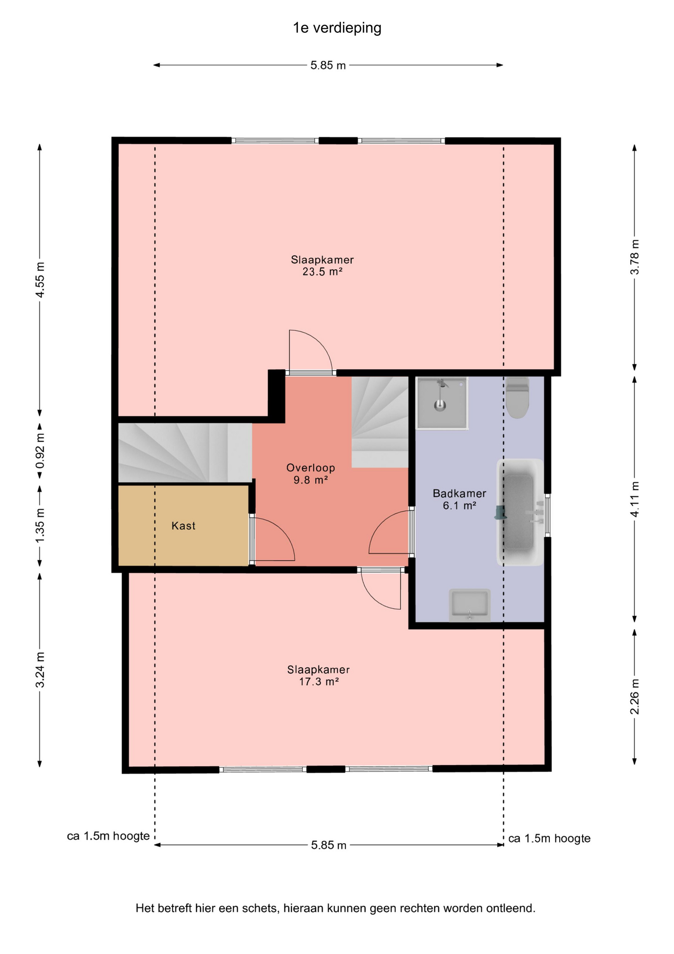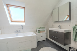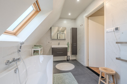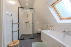 overloop – slaapkamer(23,5m²) – slaapkamer(17,3m²) – moderne badkamer (2024) voorzien van douchehoek, ligbad wasmeubel en 2e toilet.