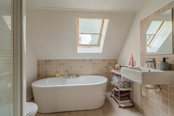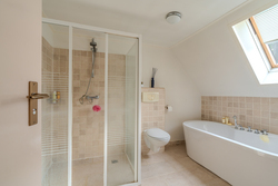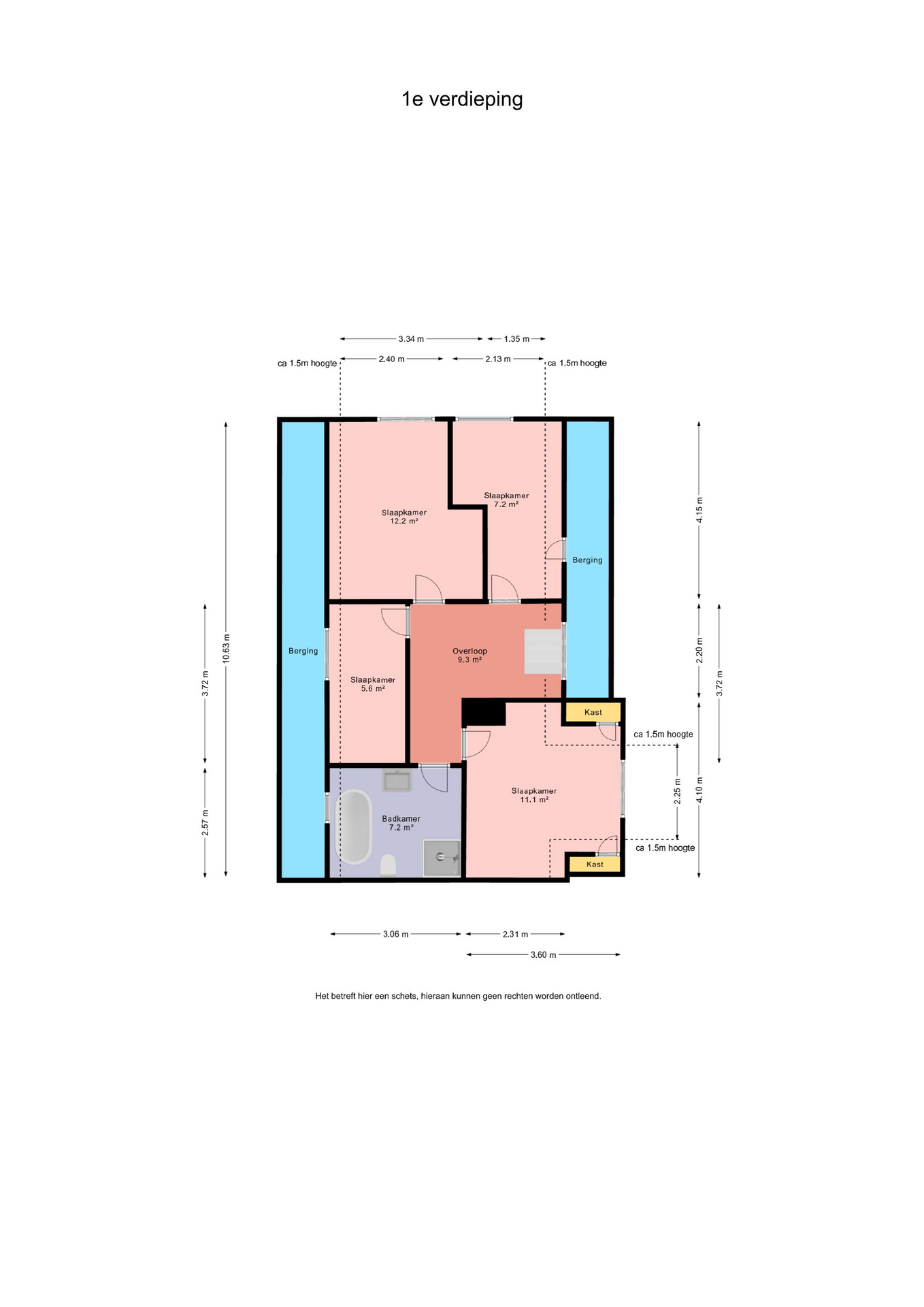 1e verdieping: overloop – slaapkamer(7,2m²) – slaapkamer(12,2m²) – slaapkamer(5,6m²) - badkamer(7,2m²) voorzien van wastafel, douche, toilet en ligbad - slaapkamer(11,1m²) – berging