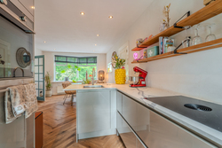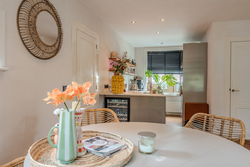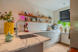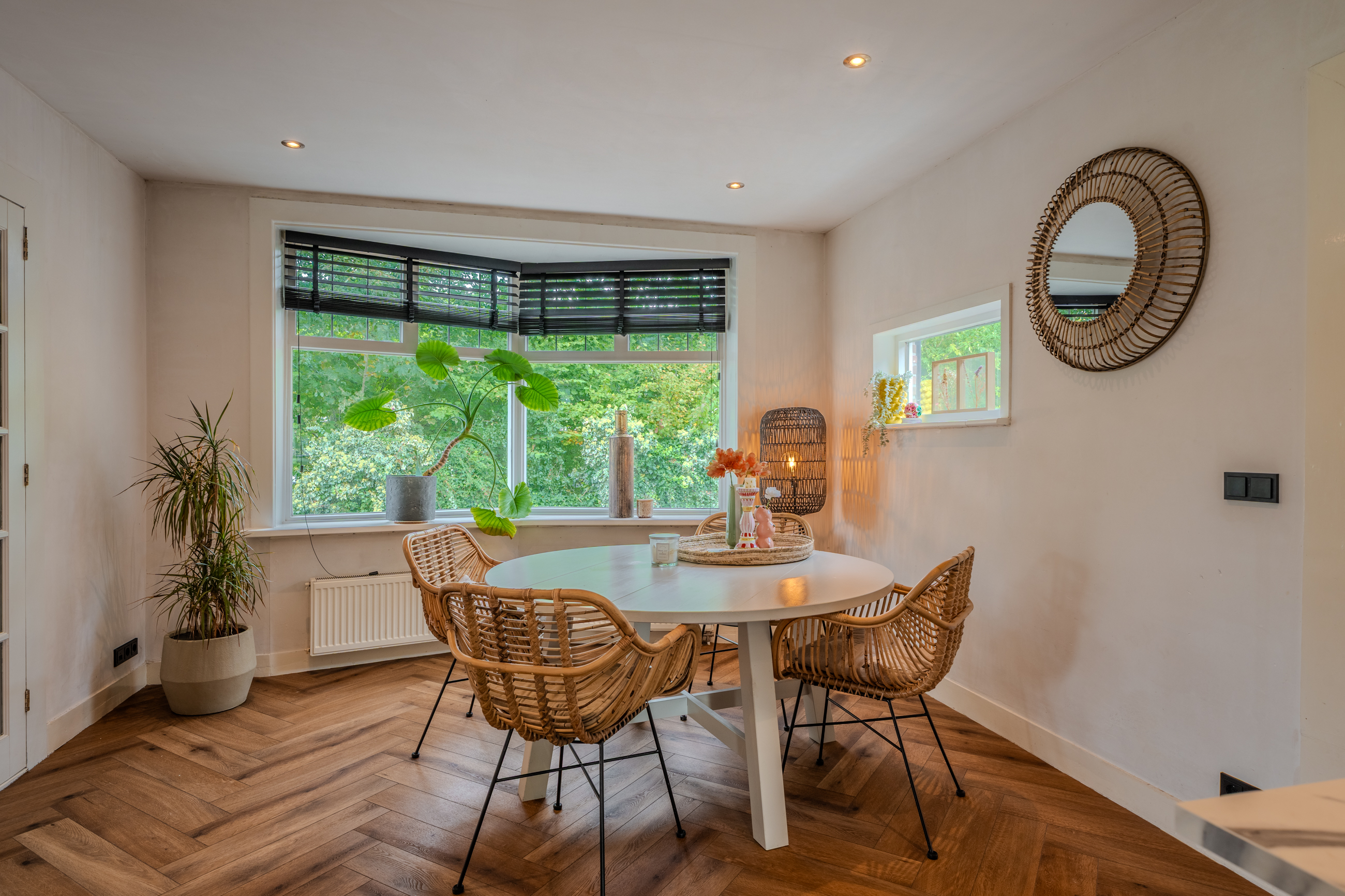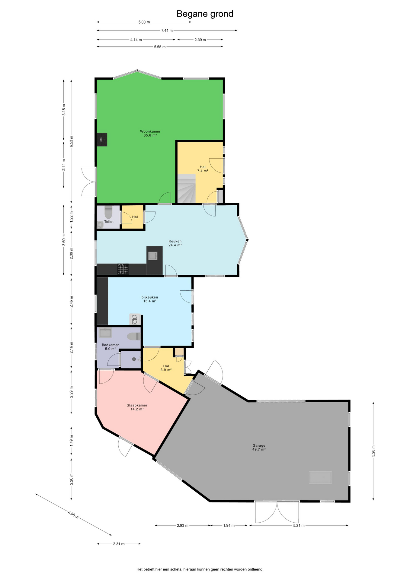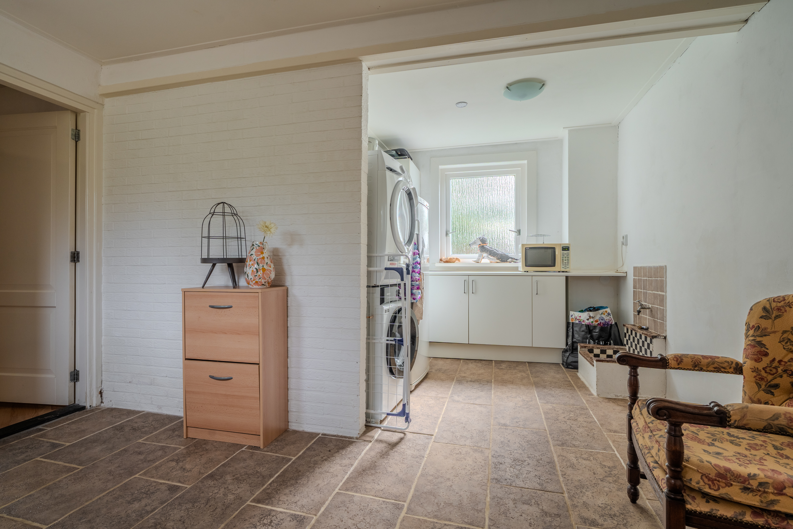 Begane grond: entree/hal met trapopgang – keuken(19,6m²) met inbouwkeuken voorzien van inductiekookplaat met afzuiging, koelkast, stoomoven, Quooker en vaatwasser – hal – toilet - woonkamer(35,6m²) met openslaande deuren – bijkeuken met achterom en witgoedaansluiting – hal met toegang naar garage - slaapkamer(14,2m²) met achterom - badkamer(5m²) voorzien van wastafelmeubel, douche en toilet