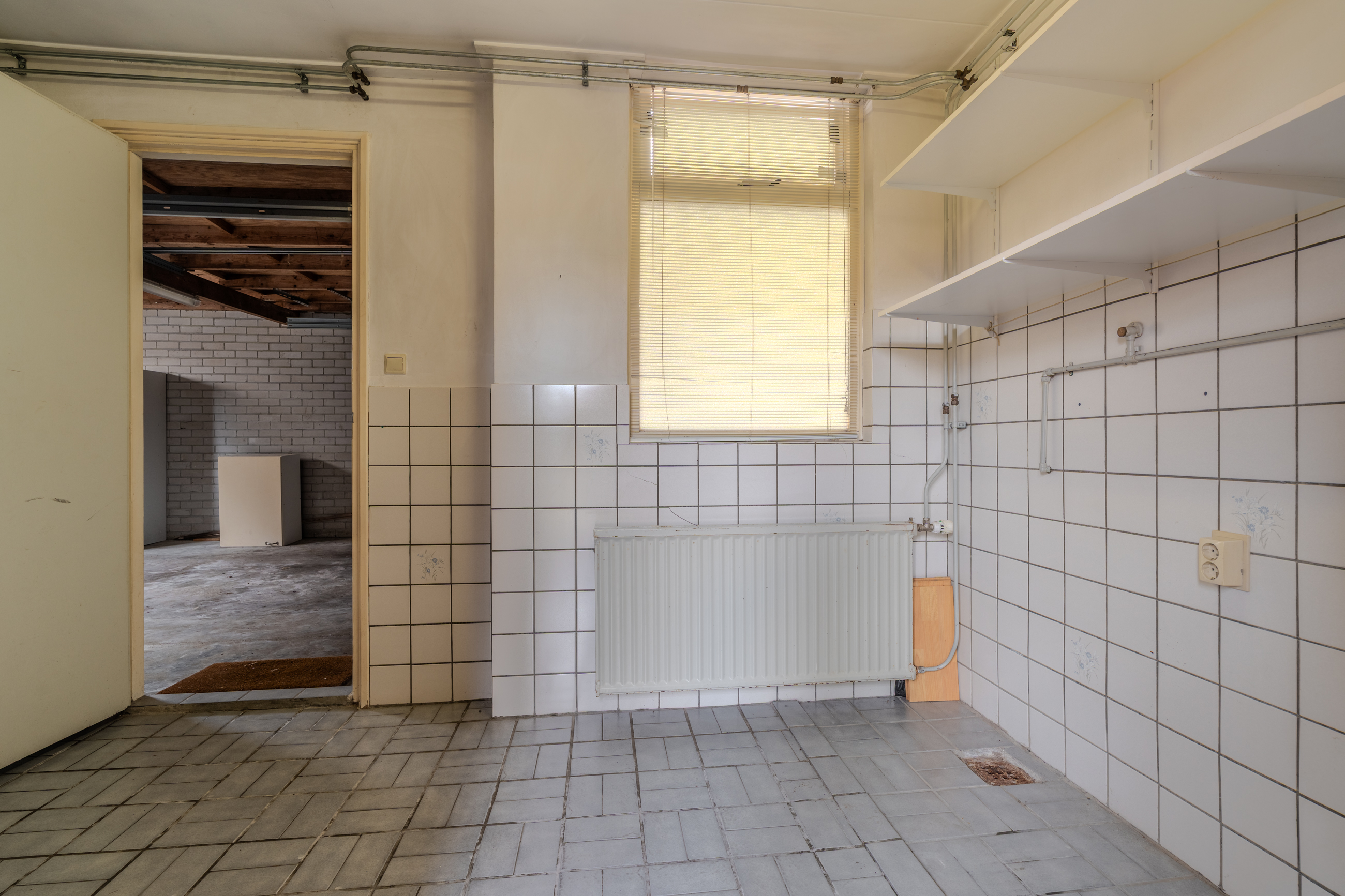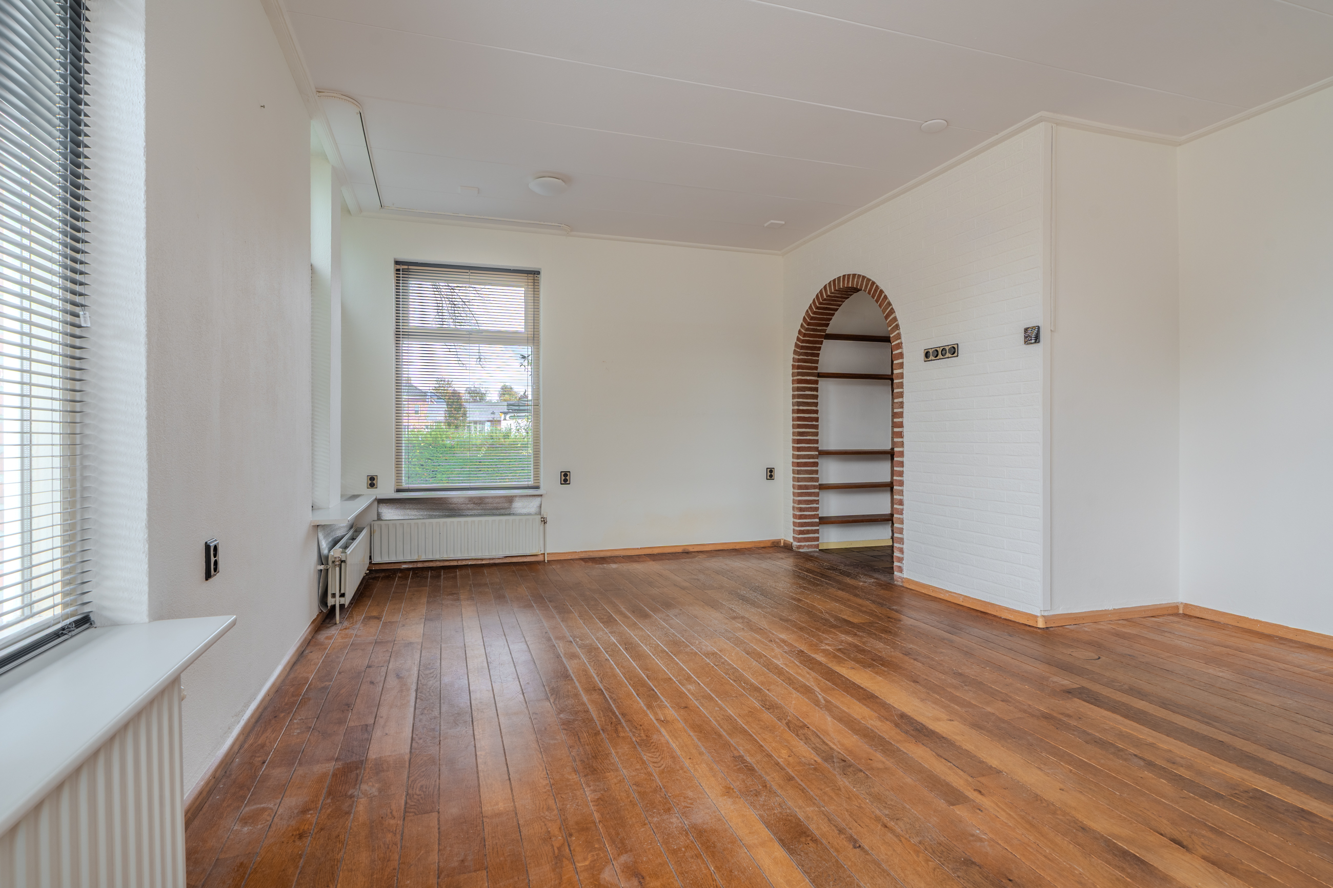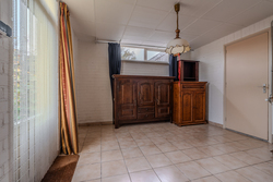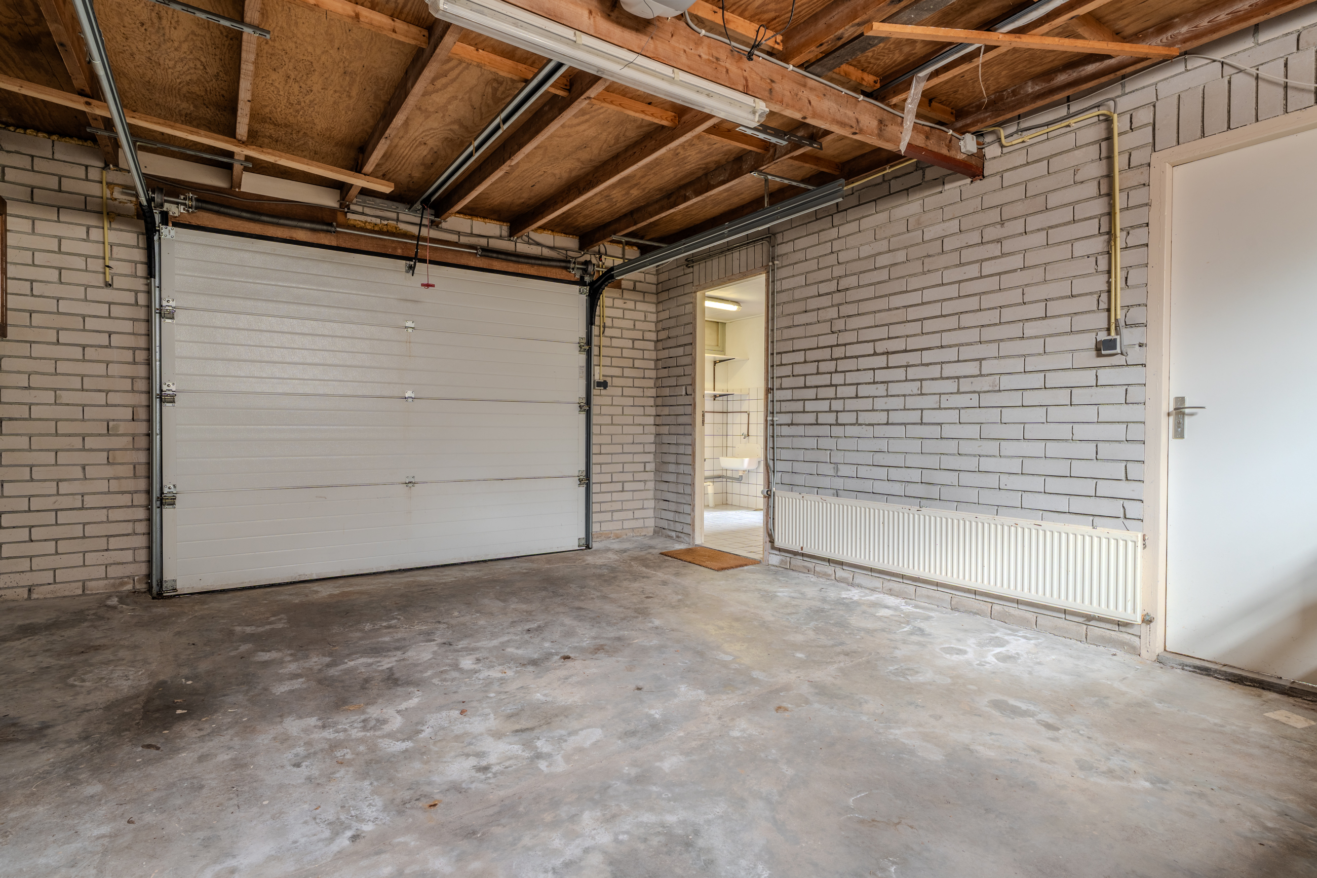 entree/gang met trapopgang en meterkast – keuken (11,3m²)met donkereiken inbouwkeuken - woonkamer(25m²) met schouw – slaapkamer (12,1m²) – slaapkamer – toilet – badkamer voorzien van ligbad, wasmeubel en douche - bijkeuken(8,3m²) met doorgang naar aangebouwde garage(26,2m²) – slaapkamer(14,4m²) met deur naar tuin.
