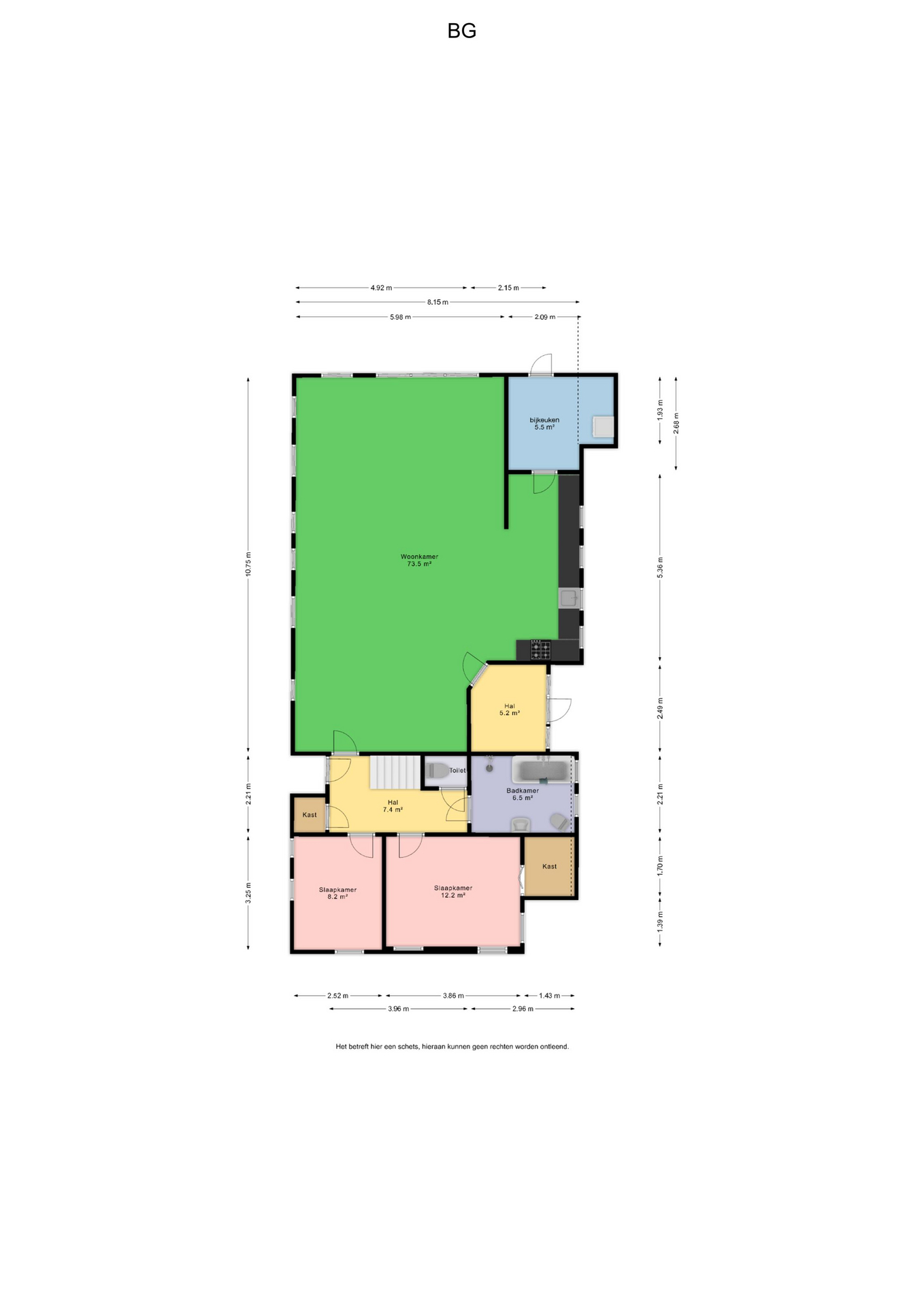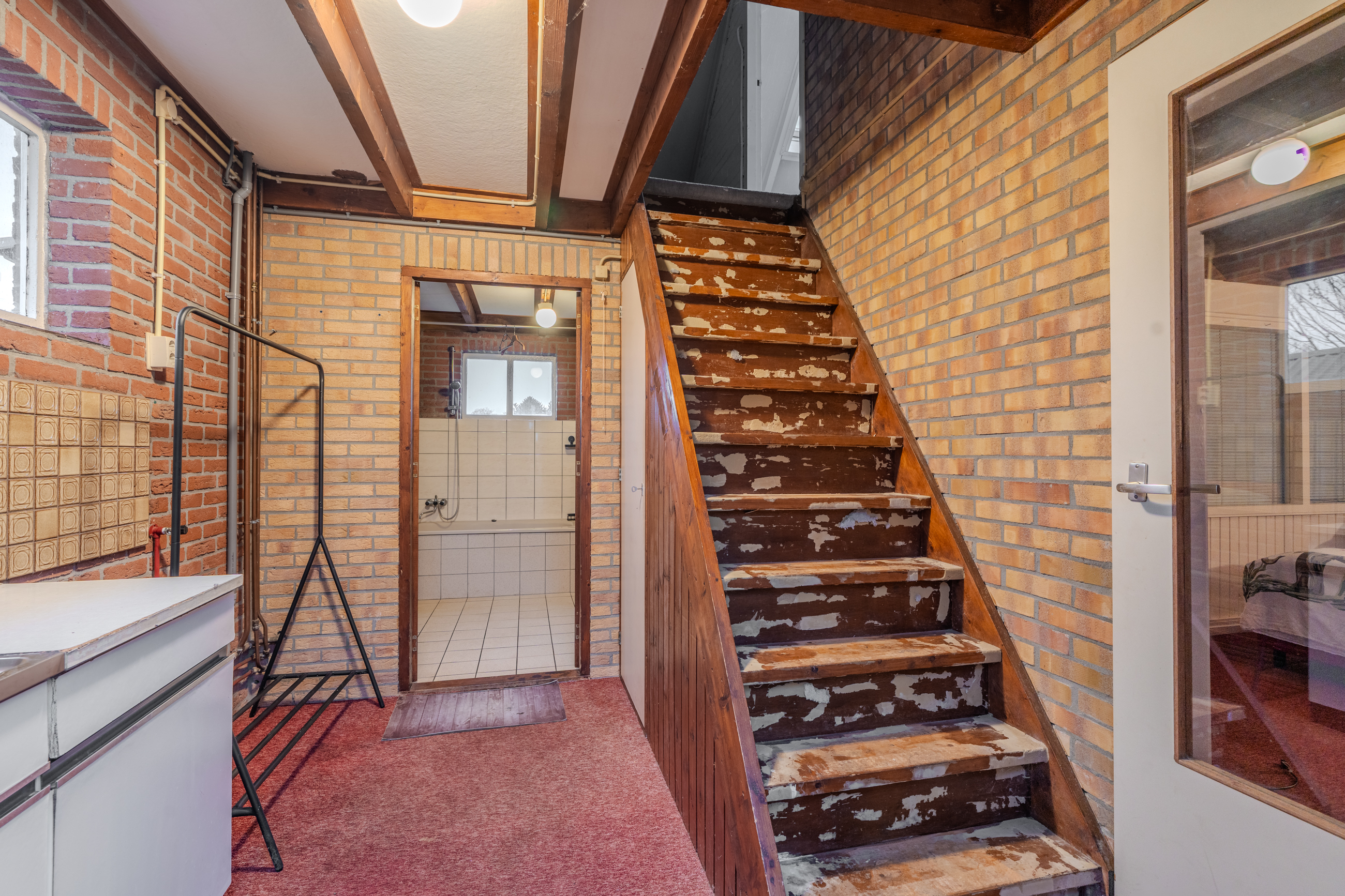 Begane grond: entree/hal - royale woonkamer met keuken(73,5m²) met openslaande deuren naar de tuin en inbouwkeuken voorzien van gasfornuis, oven, vaatwasser, koelkast en afzuigkap(defect) - bijkeuken(5,5m²) met witgoedaansluiting en achterom – hal met trapopgang en achterom - slaapkamer(8,2m²) – slaapkamer(12,2m²) met kast – toilet - badkamer(6,5m²) voorzien van douche, wastafel, toilet en ligbad.