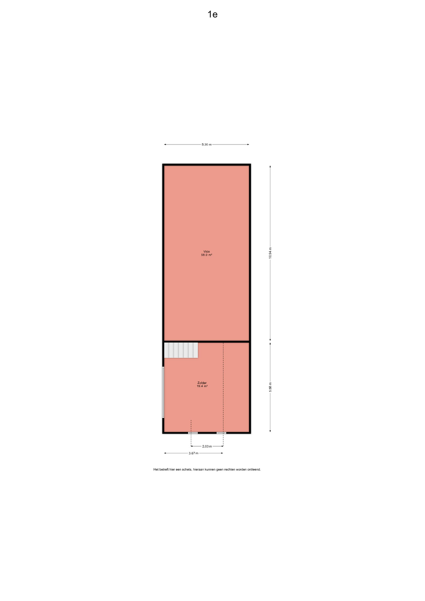 1e verdieping: zolder(19,4m²) - vide(58m²)