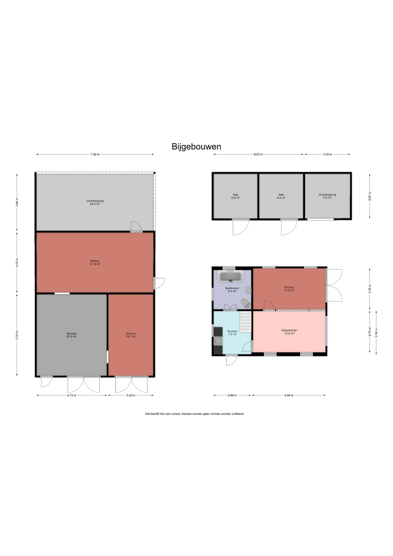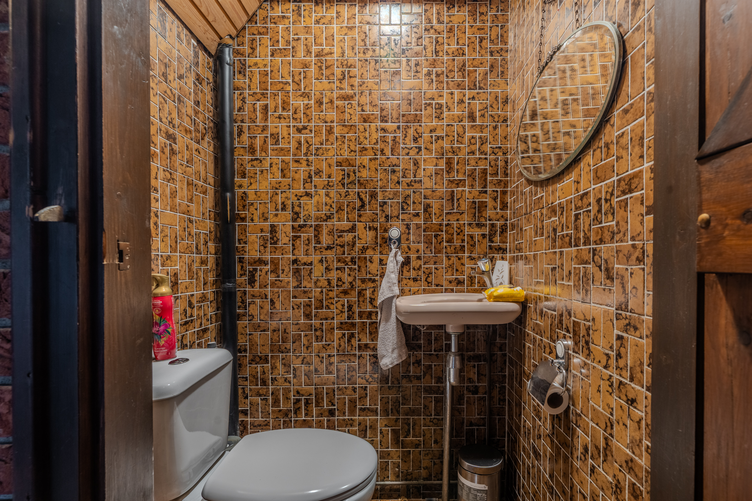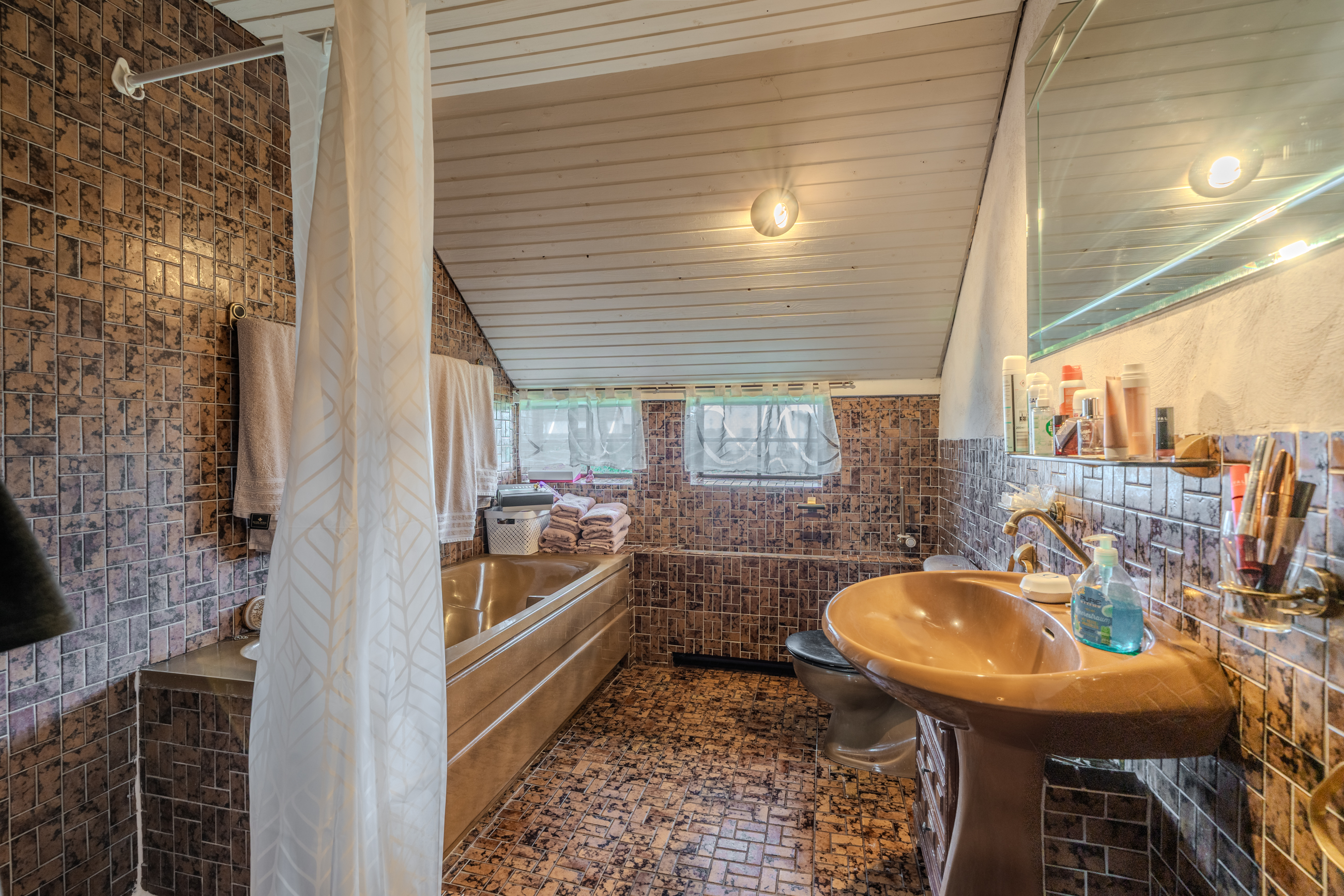Gastenverblijf: keuken(7,4m²) - badkamer(6,8m²) voorzien van ligbad, wastafel en toilet - slaapkamer(13,6m²)