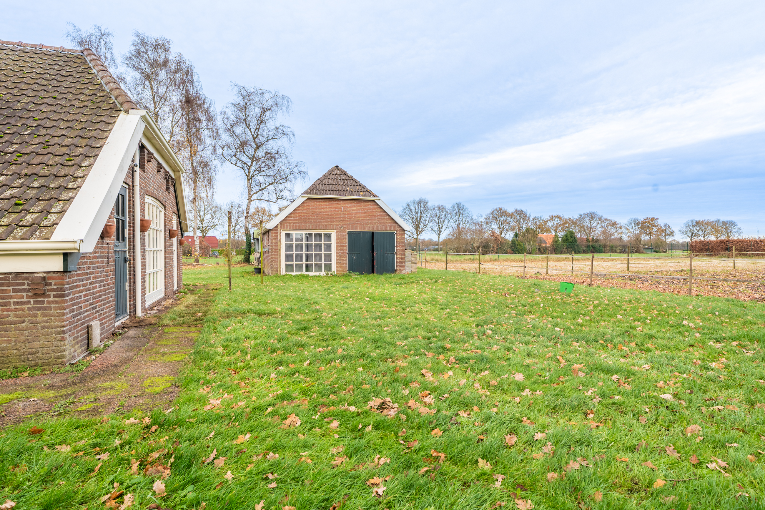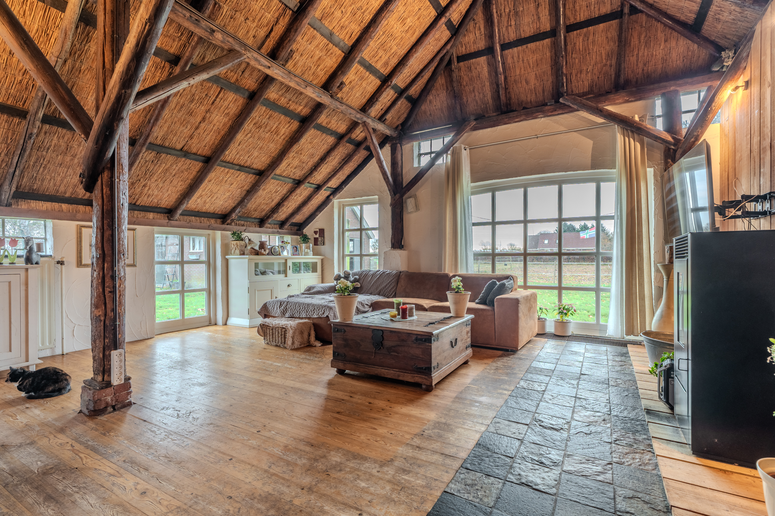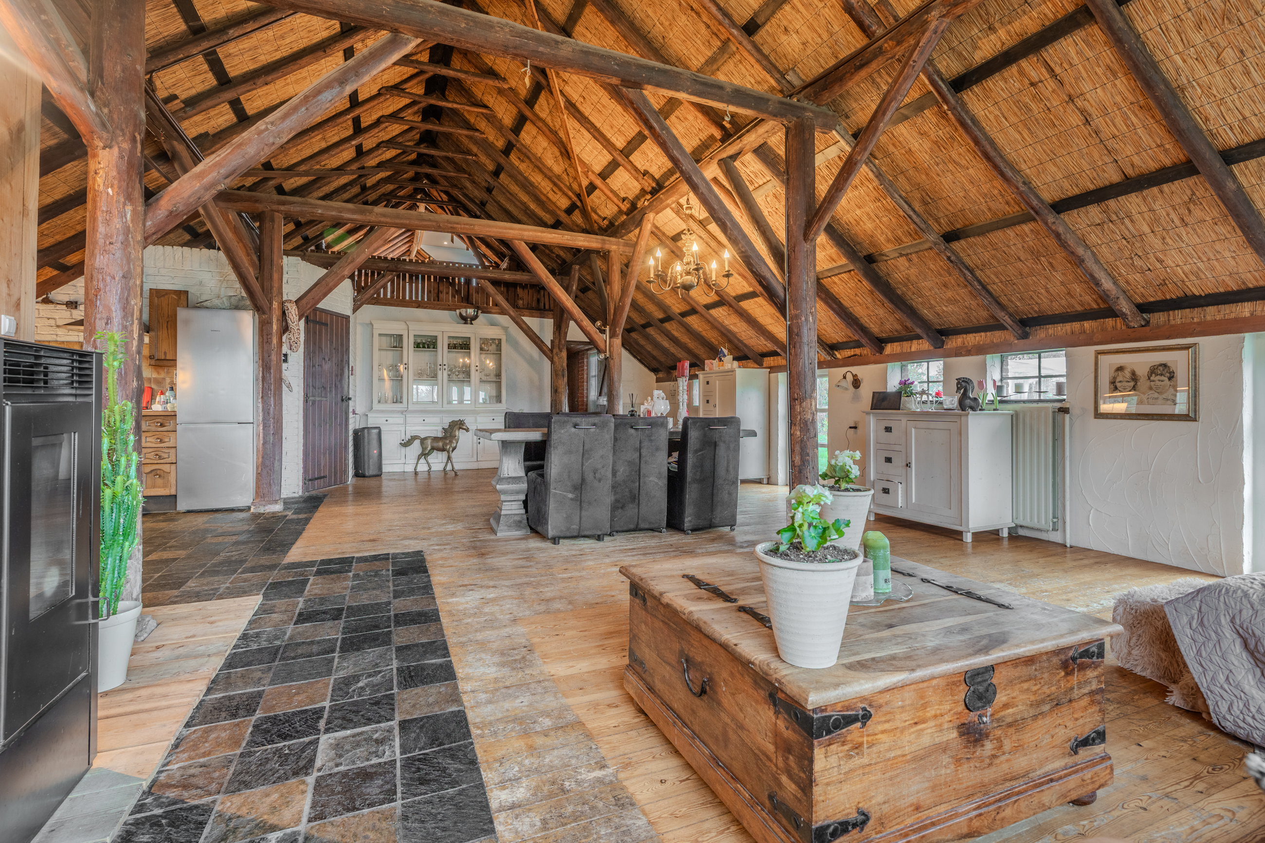Deze ruime woning met grote garage, paardenstallen, paardrijdbak en gastenverblijf biedt heel veel mogelijkheden. De ruime living met keuken is maar liefst 73,5m2. Door de originele houtengebinten is dit echt een verborgen parel. De twee slaapkamers en badkamer die aanwezig zijn in de woning bevinden zich op de begane grond wat zorgt voor gelijkvloers wonen. Het gastenverblijf bevindt zich apart in de tuin met keukenblok, badkamer en nog eens twee slaapkamers. De kavel heeft een oppervlak van 4390m² met vrij uitzicht over de landerijen. Samen met de ruime garage en paardenfaciliteiten is er veel mogelijk. Kortom een ruime woning op een prachtige locatie vol mogelijkheden.