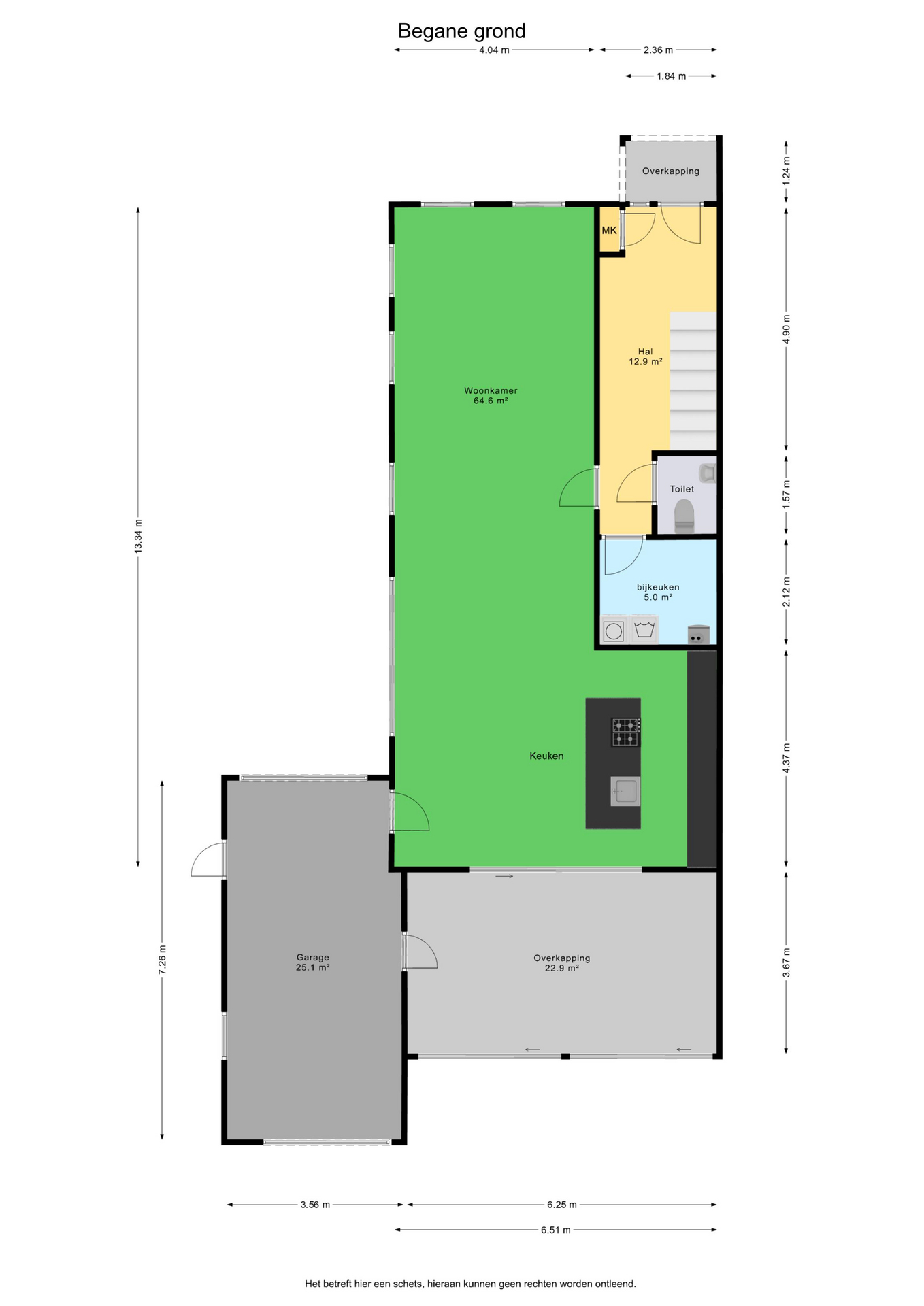 Begane grond: entree/hal met trapopgang - toilet – bijkeuken(5m²) met witgoedaansluiting - woonkamer(64.6m²) met openkeuken, voorzien van kook- en spoeleiland, Quooker, vaatwasser, combimagnetron, inductiekookplaat met afzuiging en koel/vriescombinatie – garage(25,1m²)