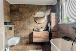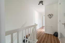 1e verdieping: overloop – slaapkamer(12.4m²) - badkamer(7,4m²) met toilet, voorzien van wastafelmeubel, inloopdouche, ligbad en toilet - slaapkamer(12.9m²) - slaapkamer(14.2m²)
