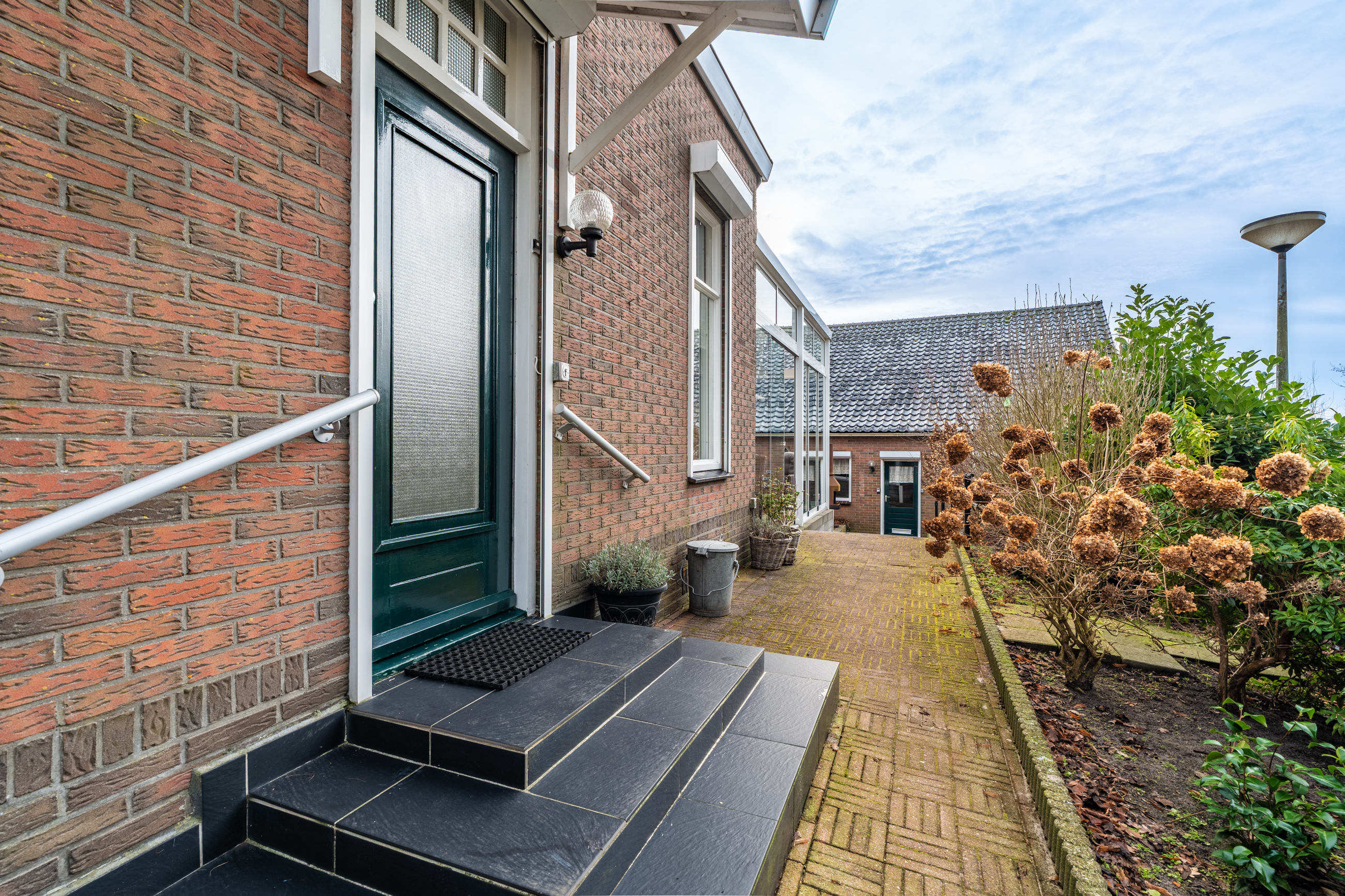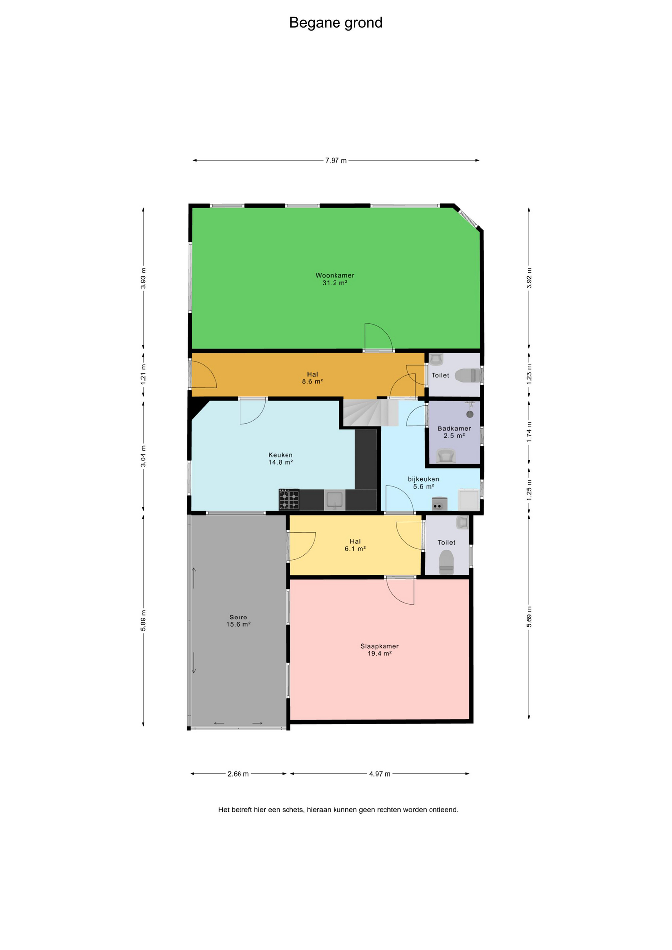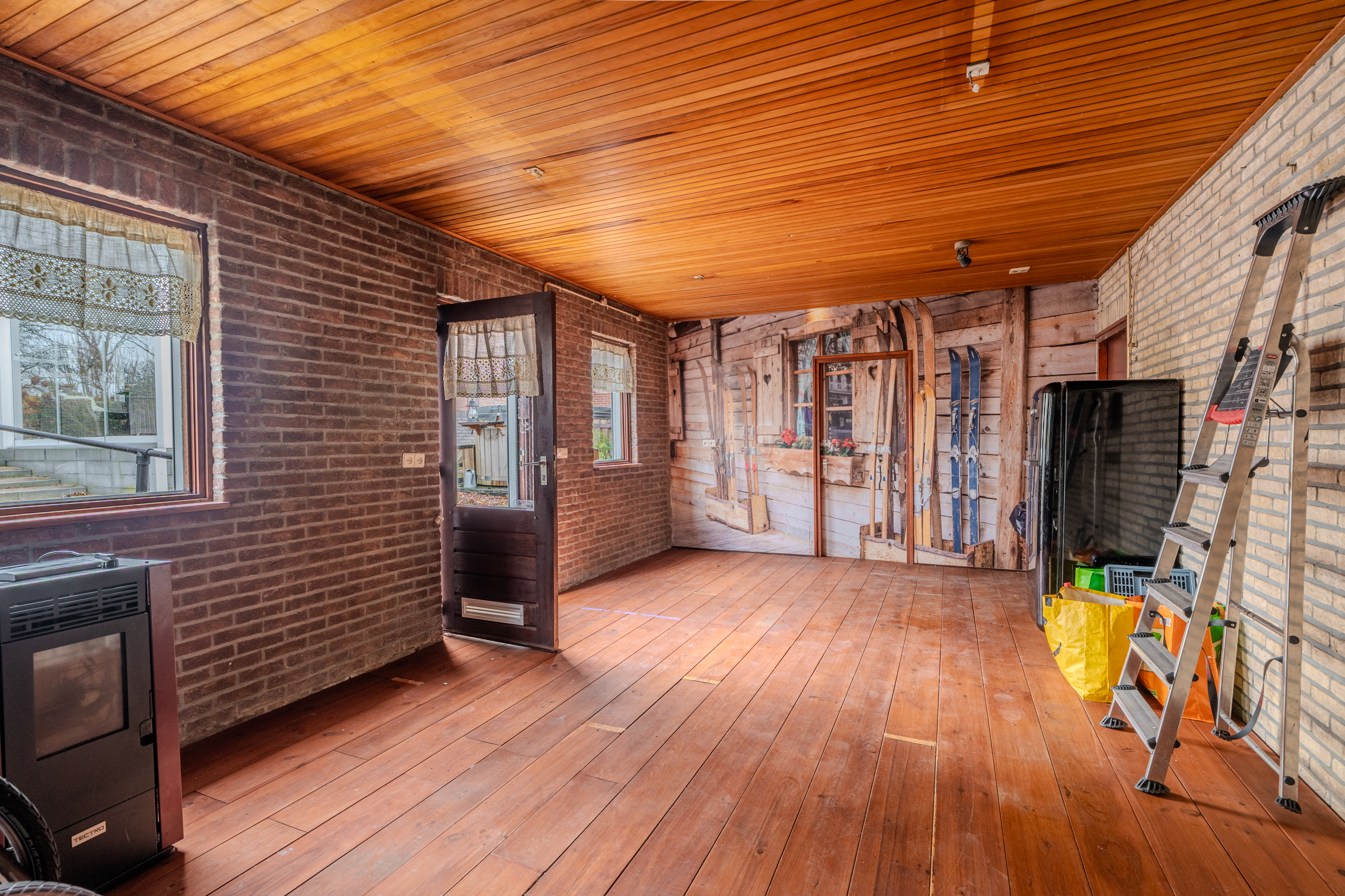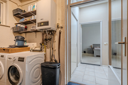 Begane grond: entree/hal met trapopgang – keuken(14,8m²) voorzien van inbouwkeuken met kookplaat, afzuigkap en vaatwasser - woonkamer(31,2m²) – toilet met fontein - bijkeuken(5,6m²) met witgoedaansluiting - badkamer(2,5m²) voorzien van wastafel en douche – hal met achterom – toilet met fontein - slaapkamer(19,4m²) – serre(15,6m²)