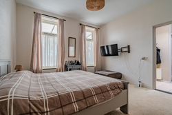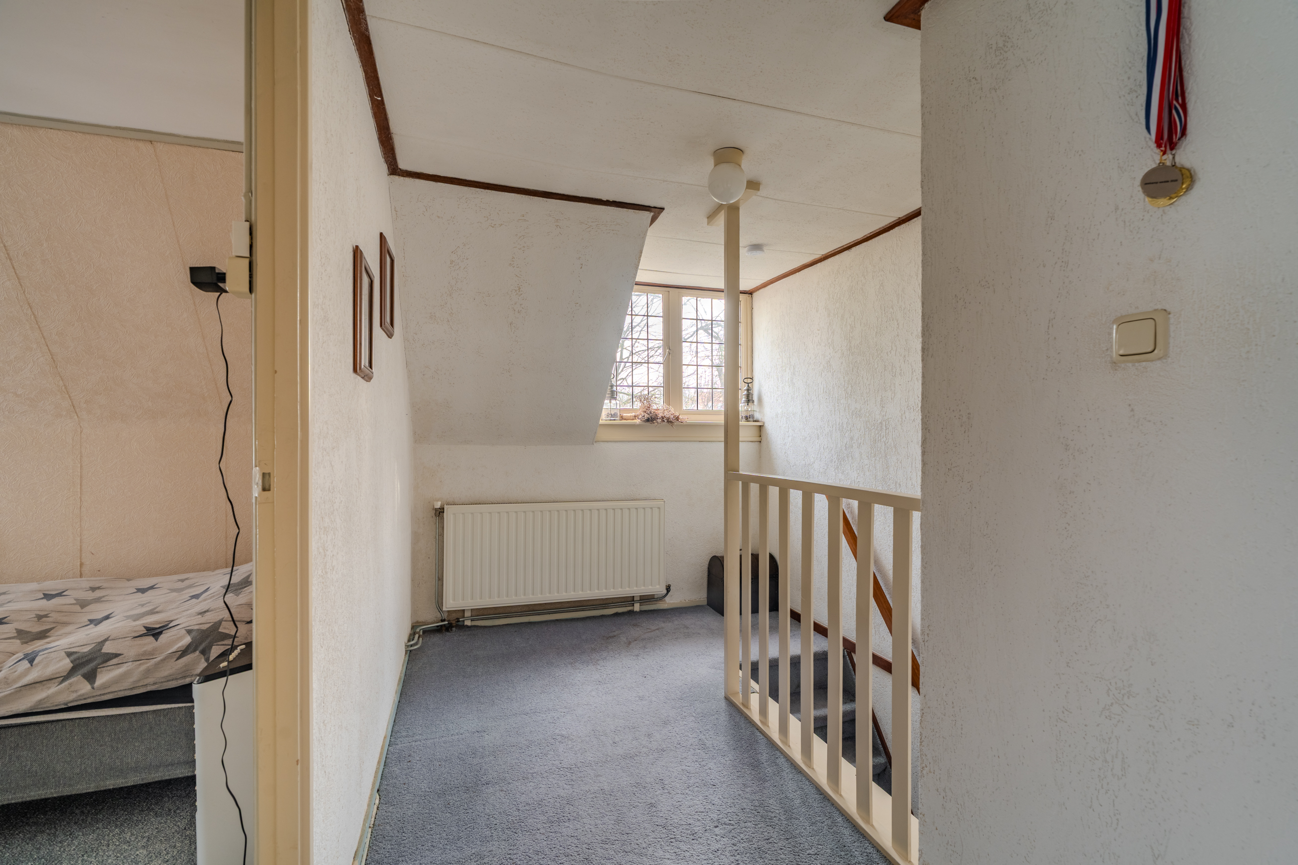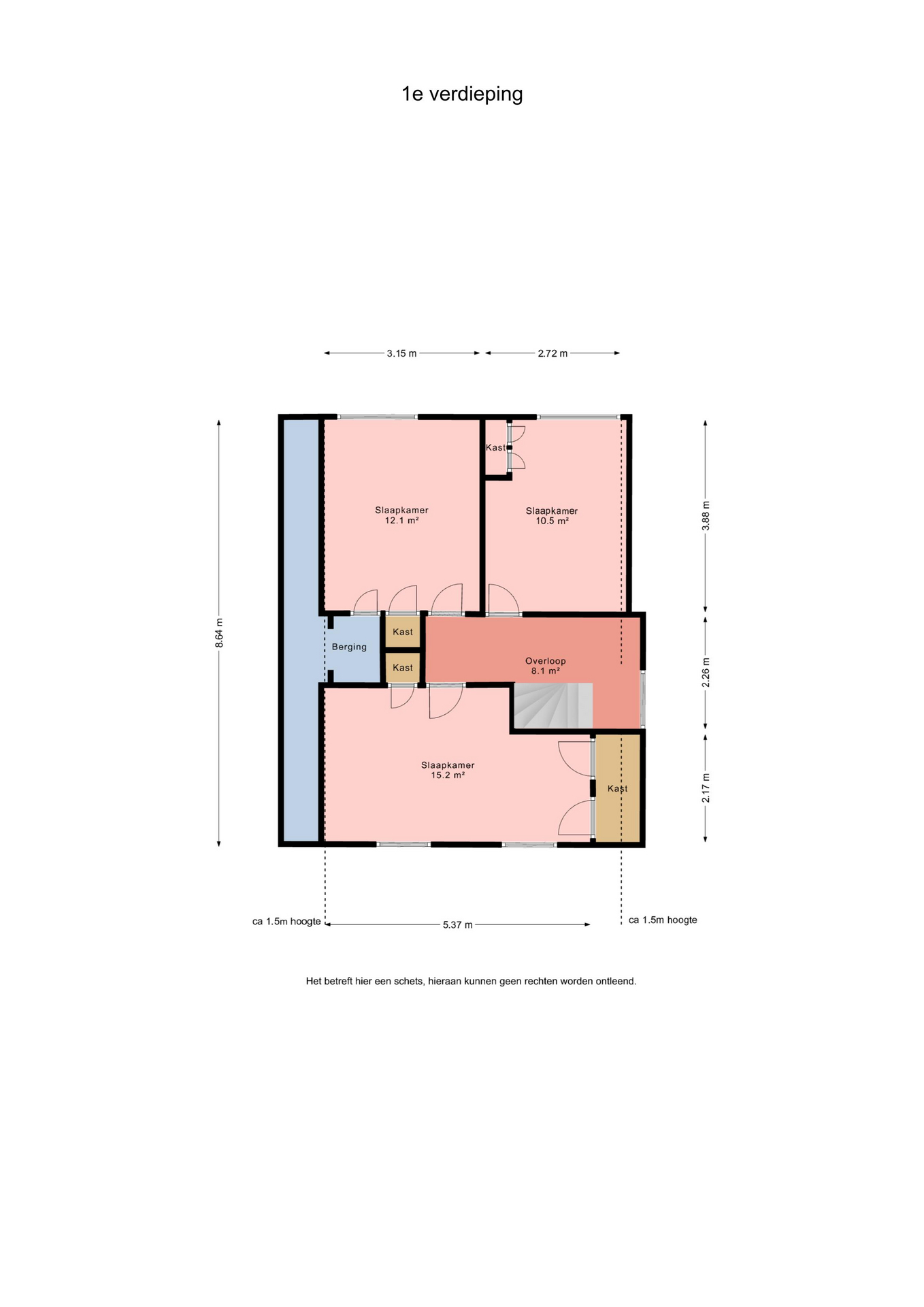 1e verdieping: overloop - slaapkamer(10,5m²) - slaapkamer(12,1m²) met bergruimte - slaapkamer(15,2m²) met inbouwkasten