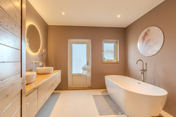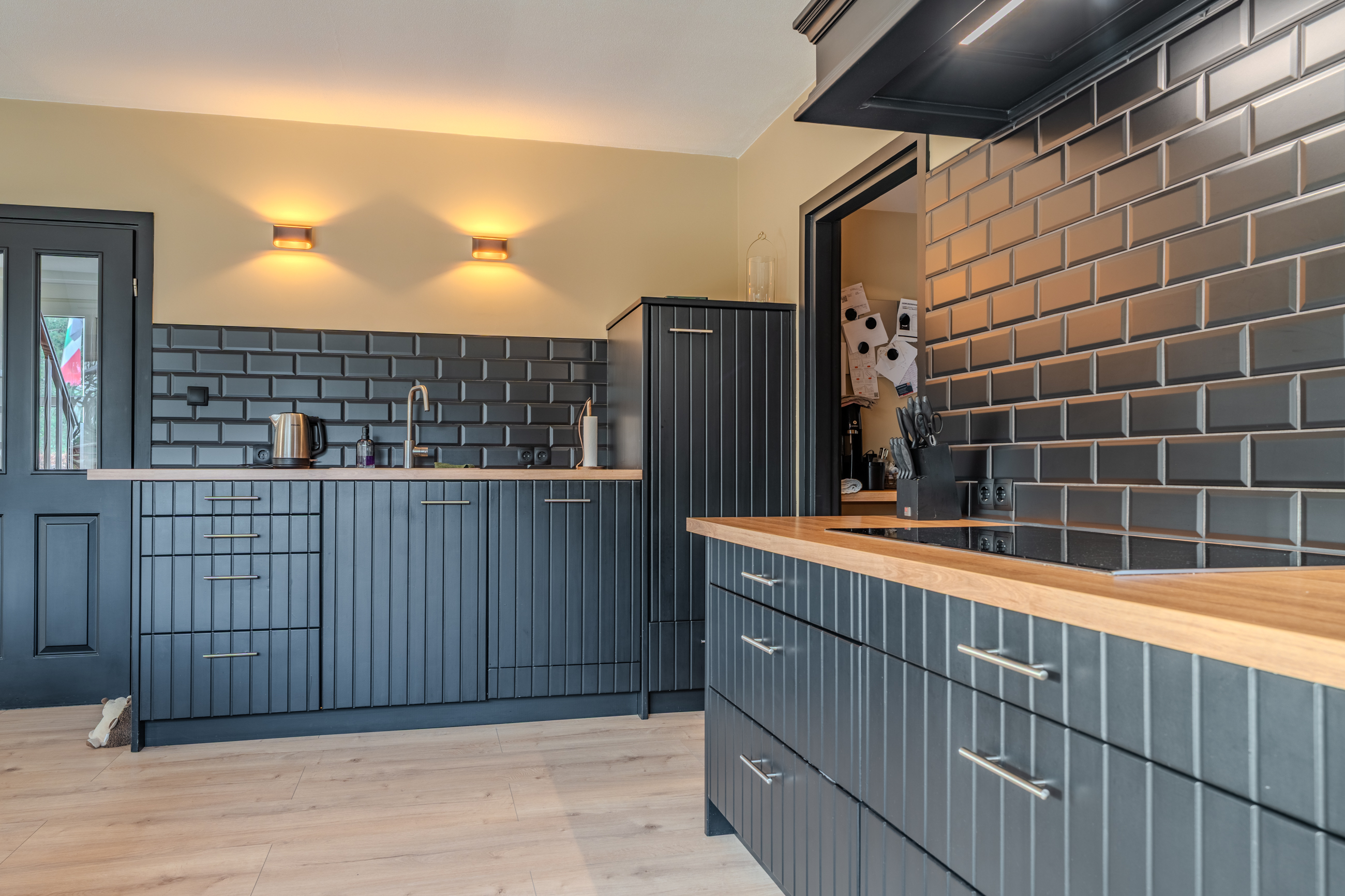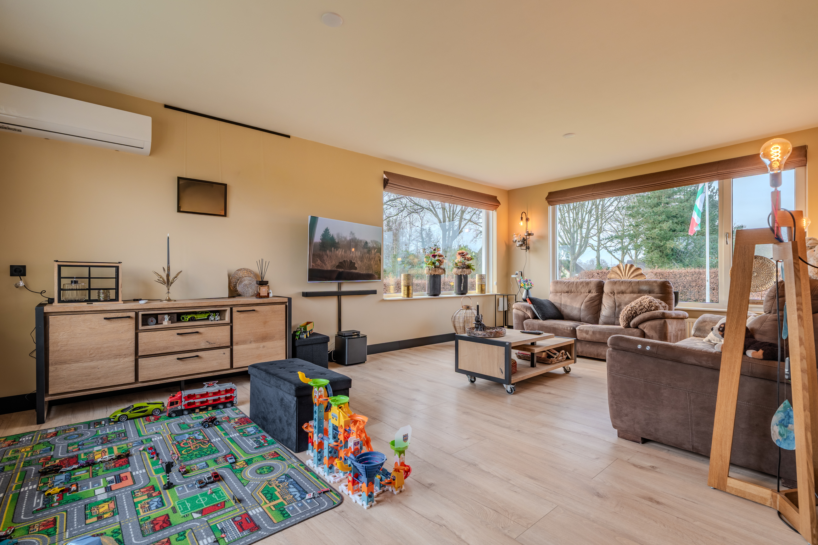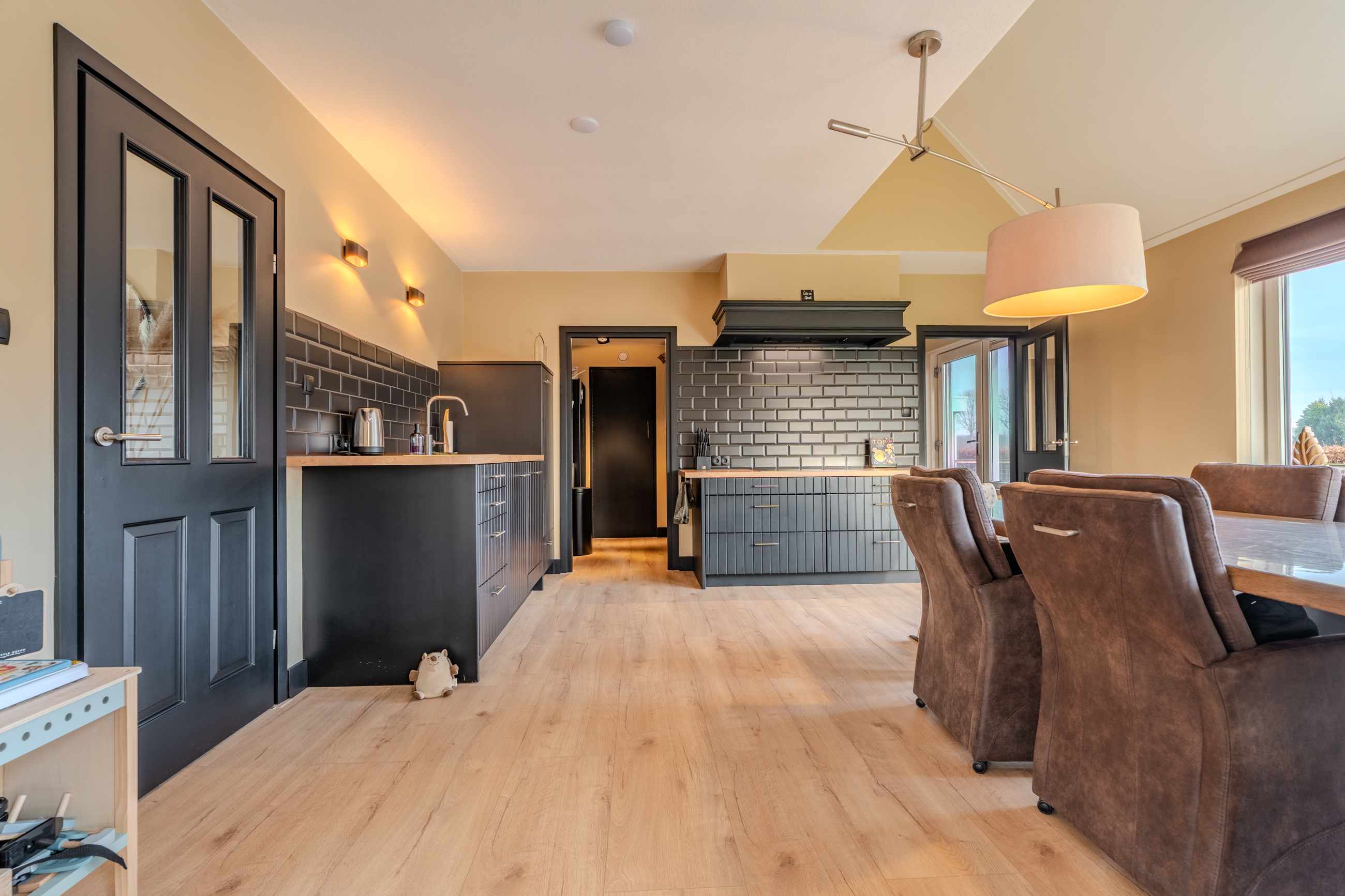 Begane grond: entree/hal met trapopgang - royale woonkamer(53,6m²) met openkeuken voorzien van inductiekookplaat, afzuigunit, oven en vaatwasser – slaapkamer(16,4m²) met inbouwkasten – badkamer met achterom, dubbele wastafelmeubel, inloopdouche en ligbad – hal met achterom – toilet - bijkeuken met witgoedaansluiting.