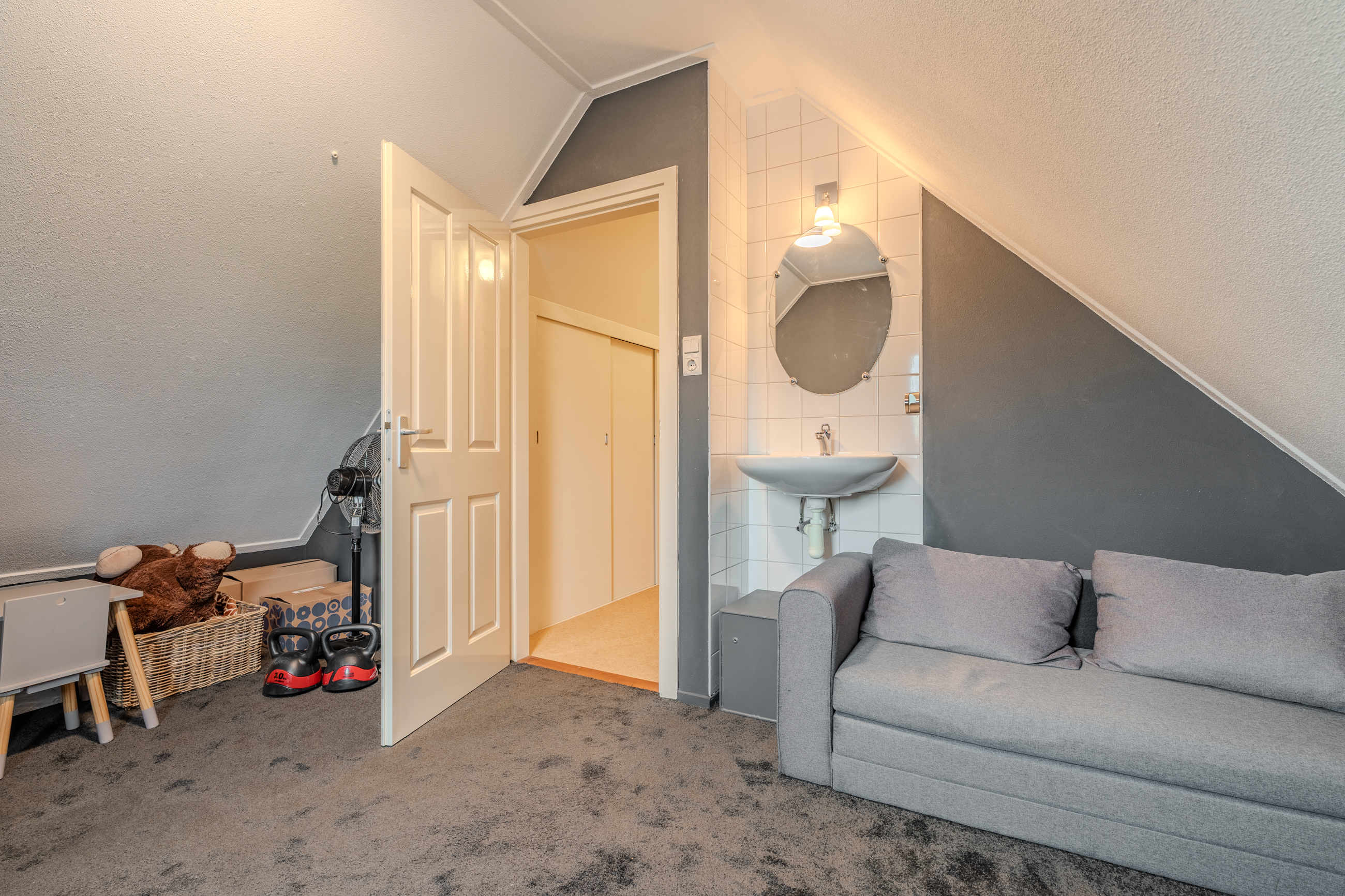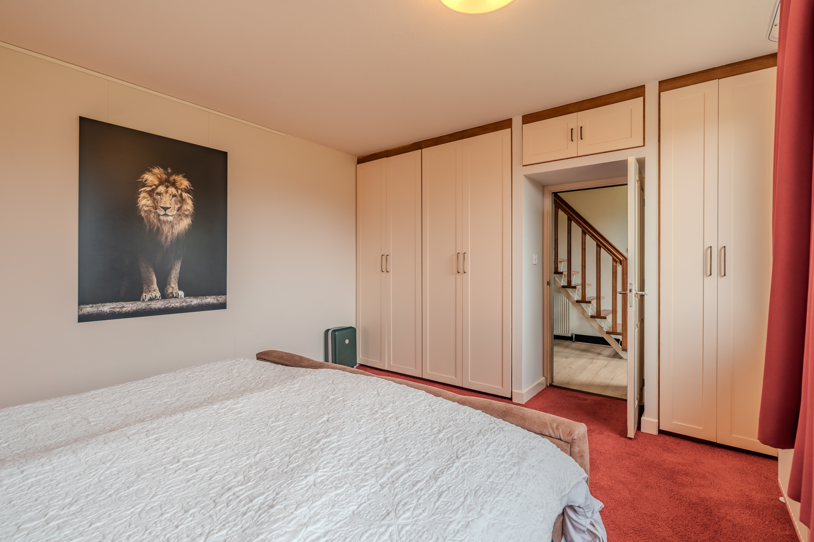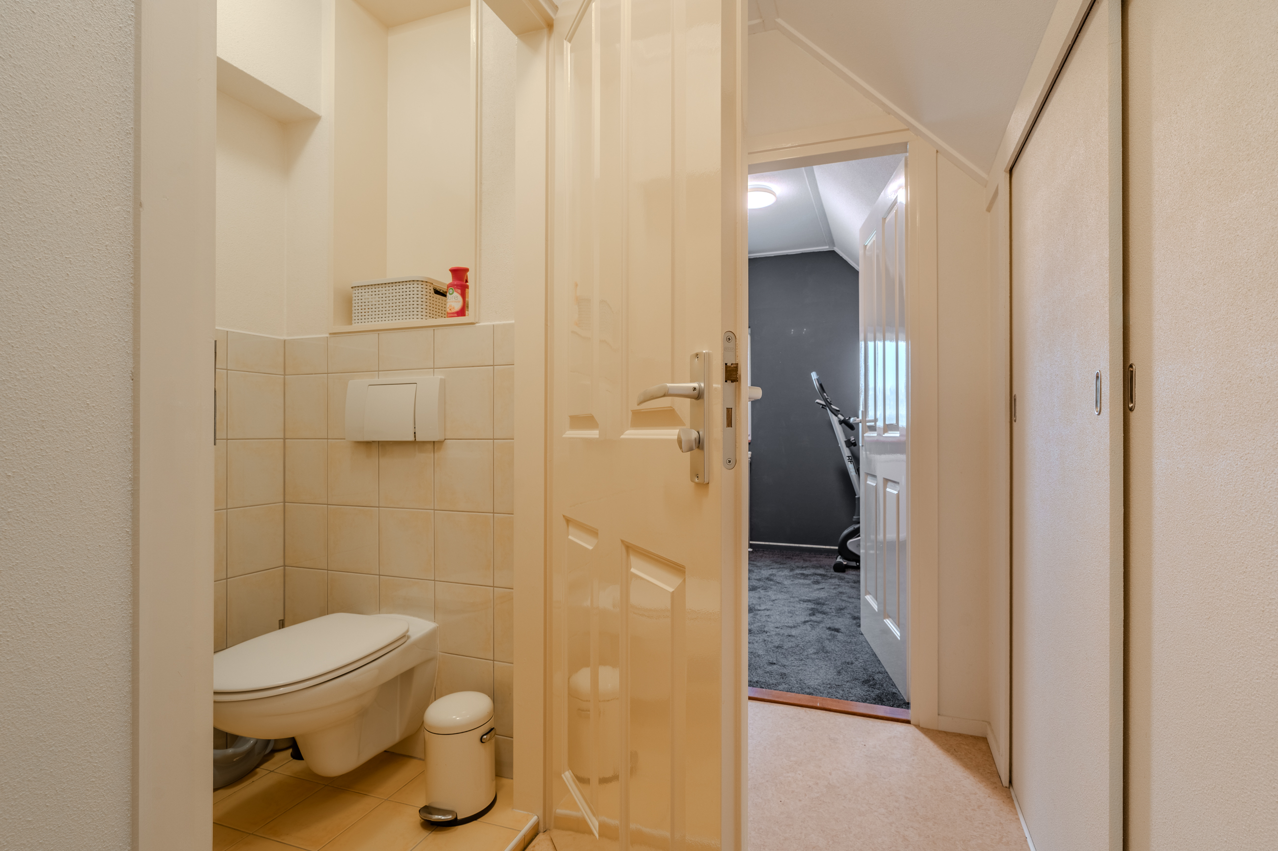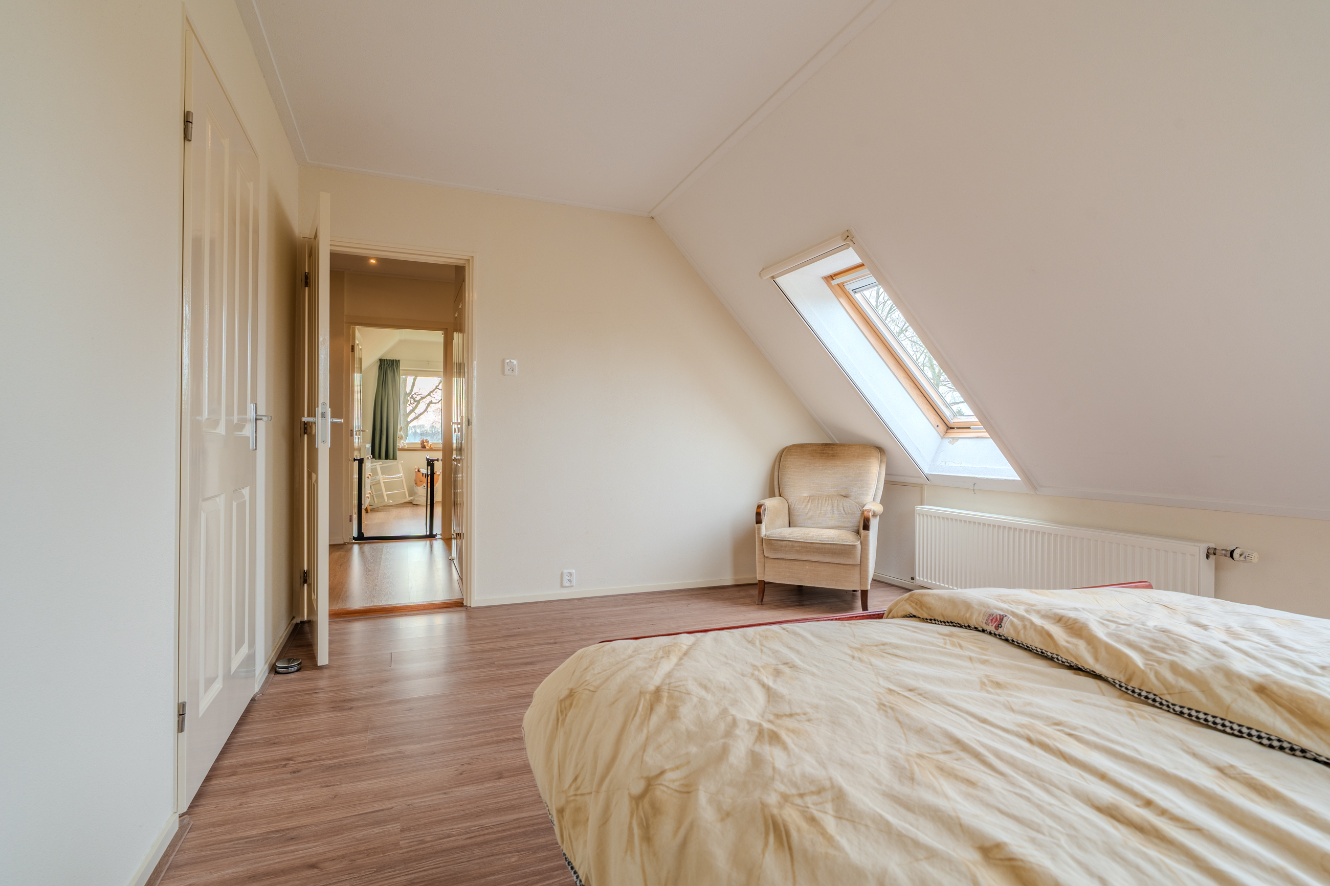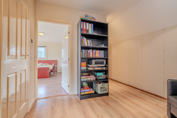 1e verdieping: overloop(12,6m²) – slaapkamer(14,2m²) met berging – slaapkamer(13,8m²) – badkamer(3,1m²) met douche en wastafelmeubel – hal met kastruimte – toilet - slaapkamer(7,4m²)