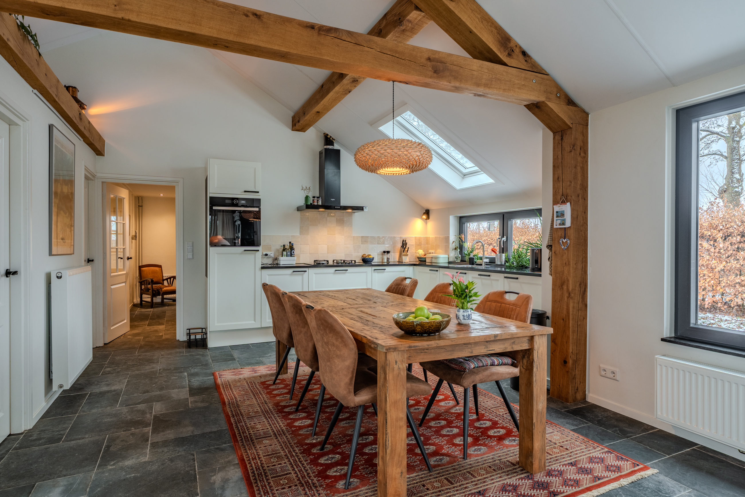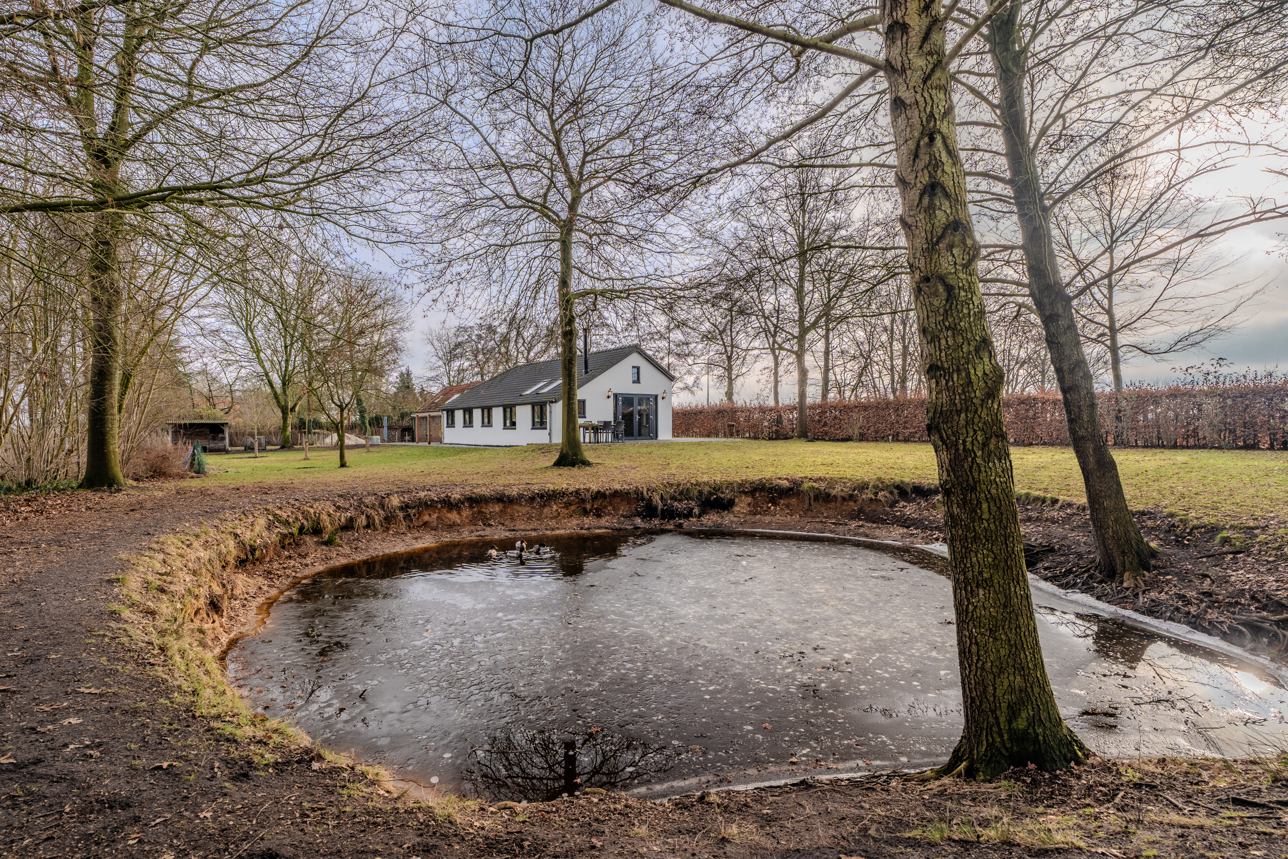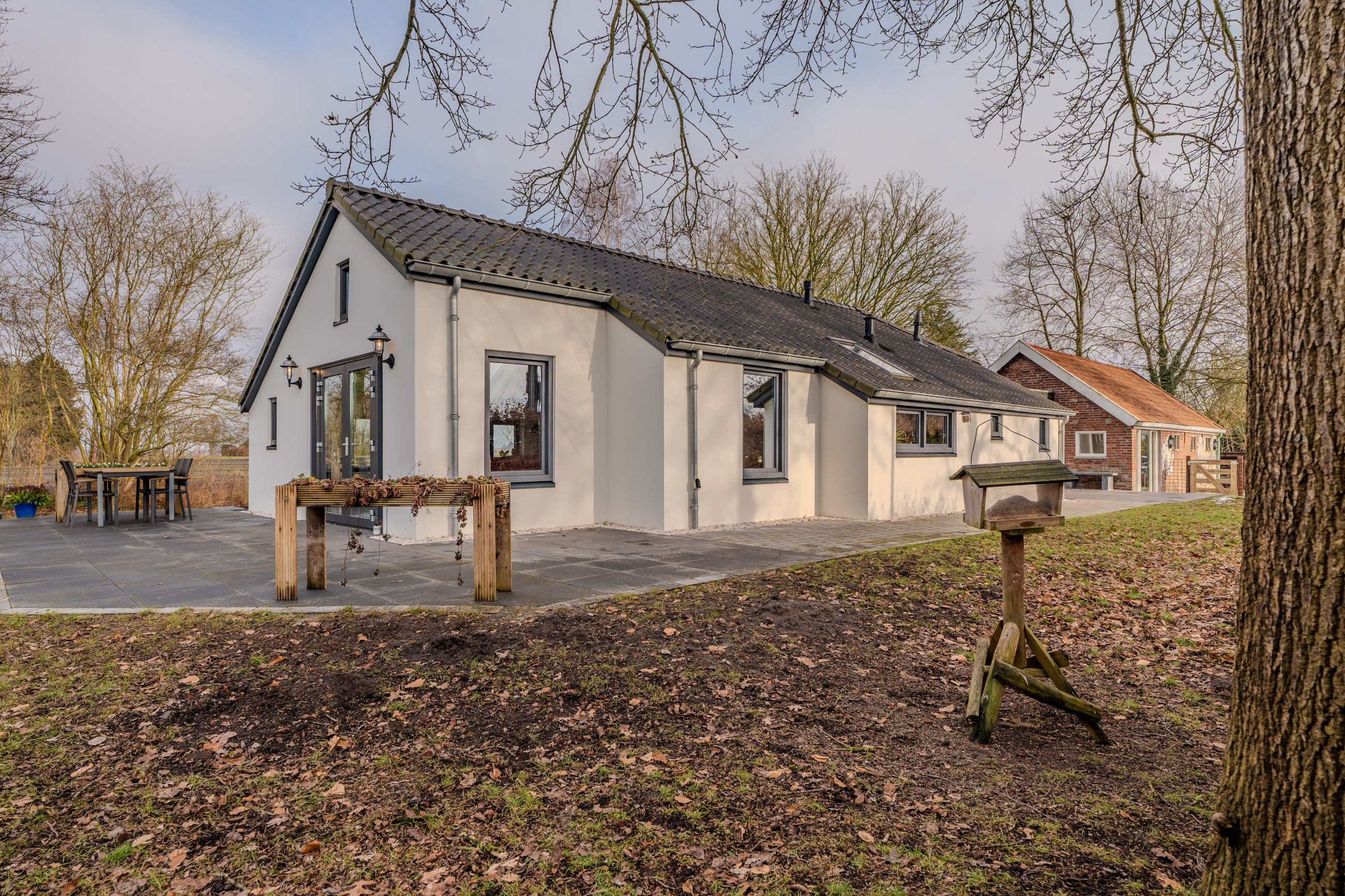 Rust, ruimte en privacy, dat zijn een aantal kernwoorden die deze woning goed omschrijven. De woning staat op een groot perceel van 2891m2 omringt door landerijen wat zorgt voor veel rust en privacy. Door de oppervlakte van de tuin is het houden van kleinvee ook zeker mogelijk. De ruime woonkamer met openkeuken beschikt over mooie douglas balken wat zorgt voor een robuust karakter. De openslaande deuren naar de tuin verbinden binnen en buiten heerlijk met elkaar. Op de begane grond bevinden zich drie slaapkamers en de badkamer wat ervoor zorgt dat alle levensbehoeftes op de begane grond aanwezig zijn. Kortom een prachtig woning op een schitterende locatie.